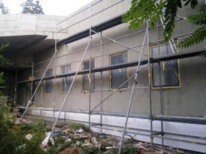 Zateplení fasády objektu SO 12, Praha 5 Křížová ulice. Neskutečně podrovnávání nerovností stávajícího skeletu pod Fasádní polystyren 50 mm. Bachl Extrapor, zakládací lišta, talířové hmoždinky, polystyrénová zátka, silikonová omítka Weber 1,5 mm (točená) 700 m2. Dozdění opěrné zdi, sanační jádrová omítka a špric WEBER sanační WTA, úprava terénu okolo objektu, nový plot se žiletkovým ostnatým drátem, podrovnání atiky, instalace odvětrávacích mřížek, dopravních značek a ukazatelů, oprava hydroizolace na parkovišti, hydroizolace prostoru |