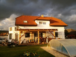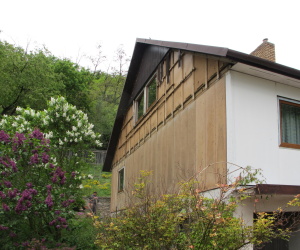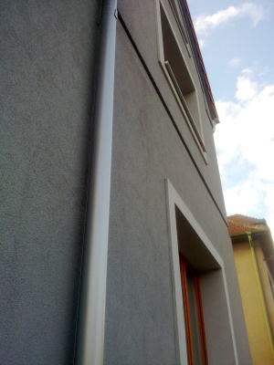 Zateplení fasády rodinný dům Loděnice, okres Beroun – střední Čechy. Fasádní polystyren 120 mm. Bachl Extrapor, zakládací lišta, talířové hmoždinky, polystyrénová zátka, silikonová omítka Weber 1,5 mm (točená) 220 m2. |