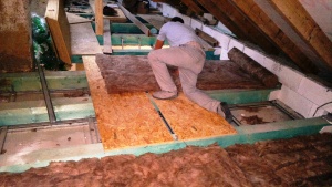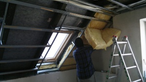 Montáž tepelné izolace Praha 5 - Radlice, zateplení šikmých střech, stropů a stěn Isover UNI tloušťka 280 mm (velmi kvalitní univerzální izolace z čedičových vláken ld = 0,035 (w.m-1.K-1)), realizovaná skladba zateplení vyhovuje profilu doporučené zateplení U 0,15 ( W.m-2.k-1), dodání materiálu včetně práce 414 Kč za m2 bez DPH. |