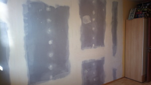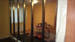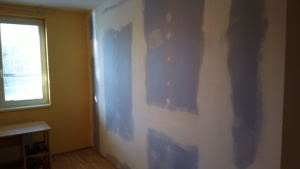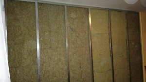 Montáž sádrokartonových konstrukcí Praha 8 - Libeň, Akustická příčka Rigips, modrá sádrokartonová deska 3.40.05 MA OK 14, příčka dvojitě opláštěná - akustická (modré ticho), akustická izolace MPE 60 mm.