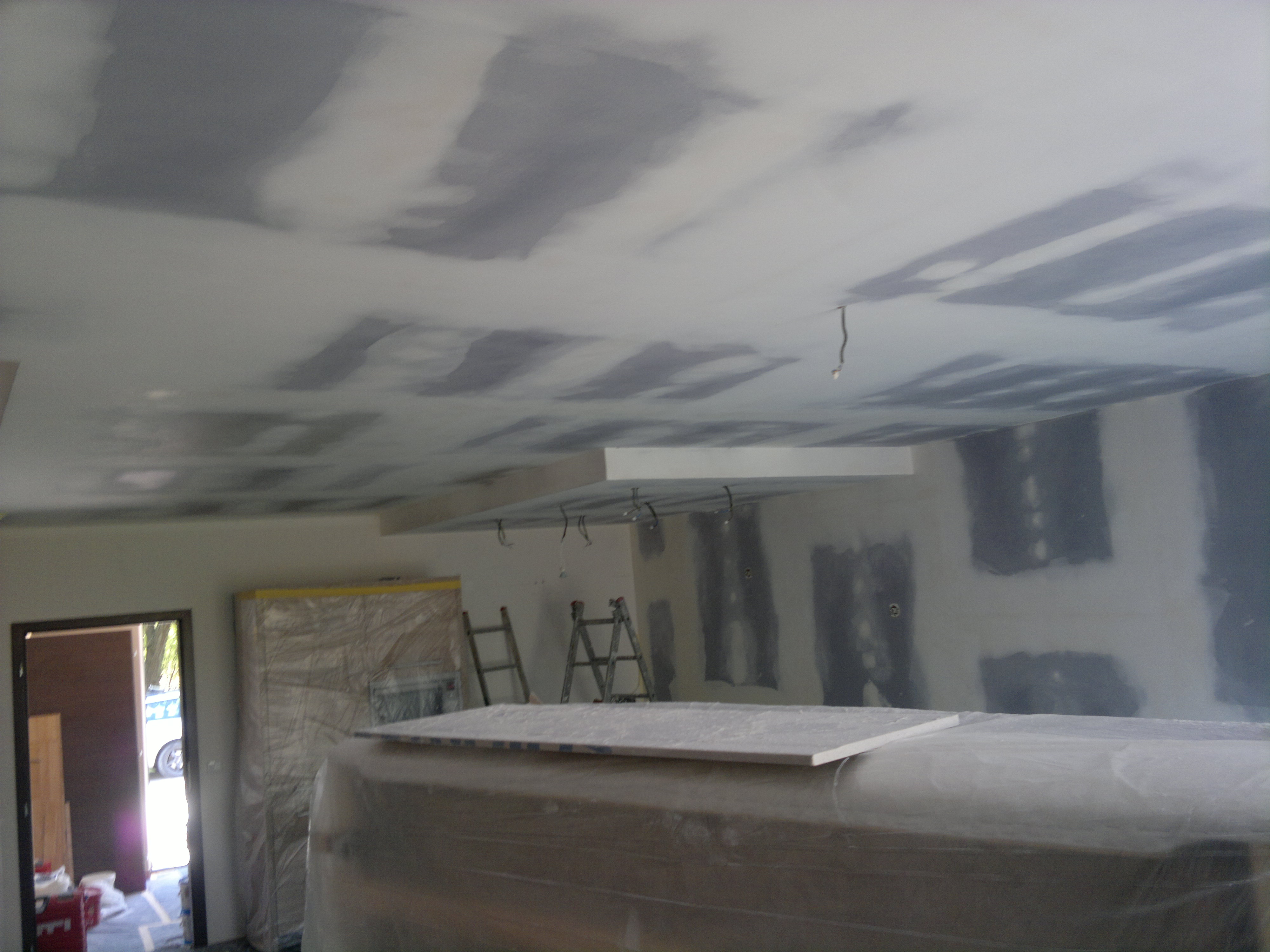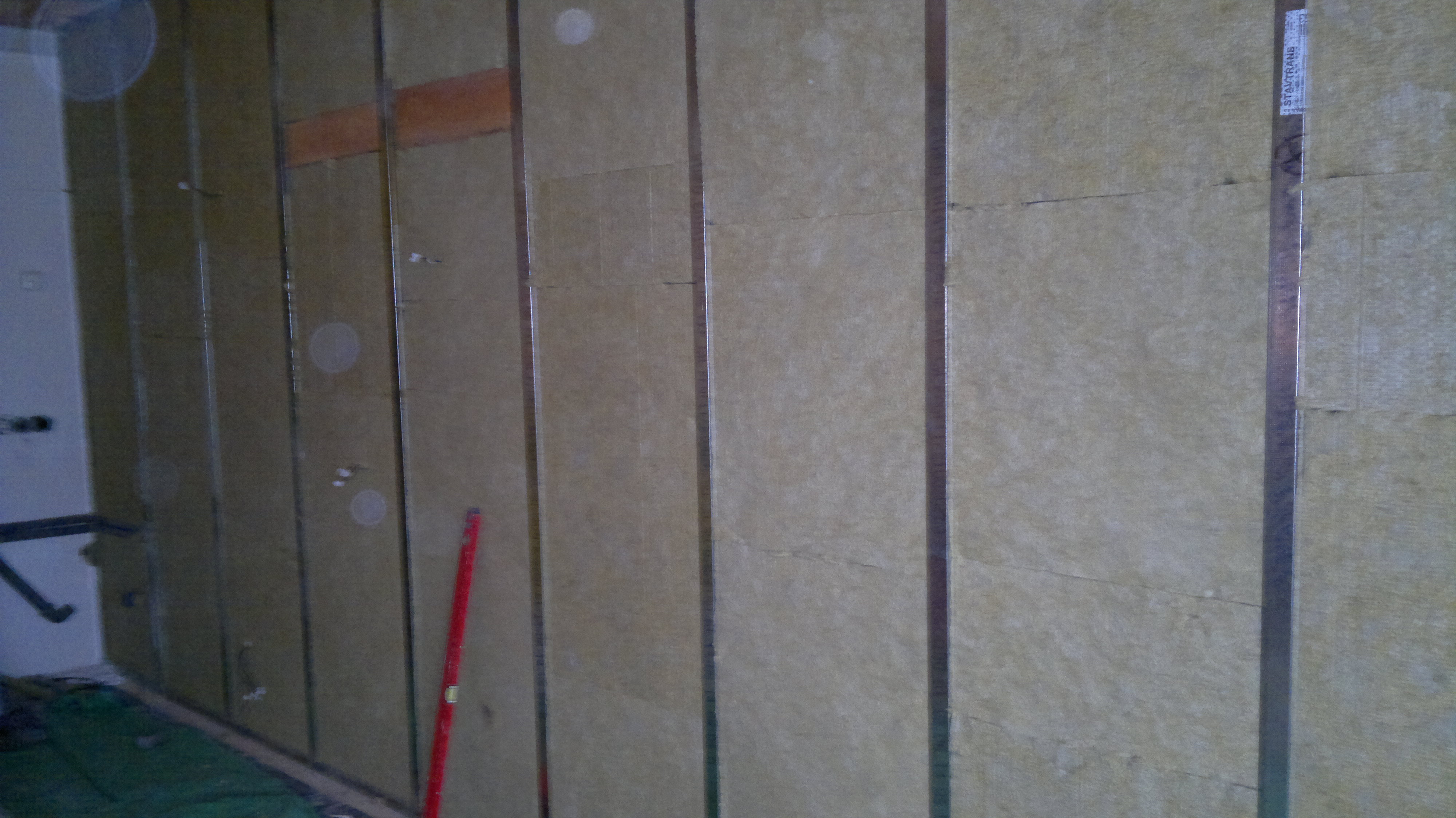 Suchá výstavba - akustický sádrokarton Modré ticho II a III etapa Rodinný dům Říčany, akustická předsazená stěna Rigips - úprava nedostatečné akustiky obvodové stěny řádového rodinného domu, rozebrání podkroví, vložení dodatečné izolace do stropní dutiny, úprava elektroinstalace předsazená stěna volně stojící akustická na CW a UW profilech 100 mm, vložená minerální izolace MPE 80 mm, zlepšení zvukové neprůzvučnosti až Rw o 28 dB., akustický podhled Rigips strop D112 zvuková neprozvučnost Rw 60db REI 30 minut, sádrokartonový ostrůvek v kuchyni, montáž a dodání LED bodového osvětlení Kanlux, výmalba |