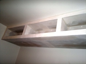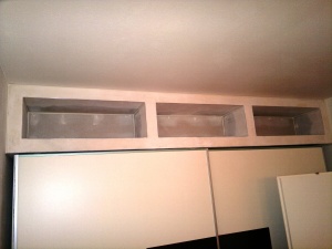 Praha 8 - Troja, nika ze sádrokartonu na vestavěnou skříní, úložný prostor