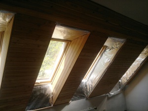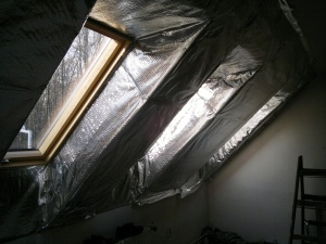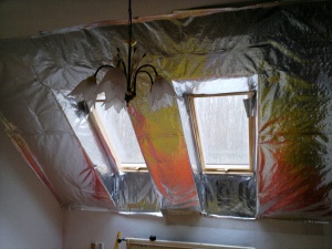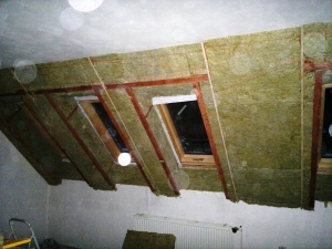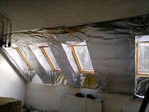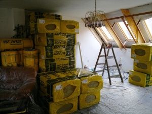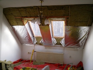 RD Praha 10 Hostivař, montáž tepelné izolace Isover ORSET tl 180 + 120 mm, difuzní folie FOLSTER 95 a parotěsná izolace