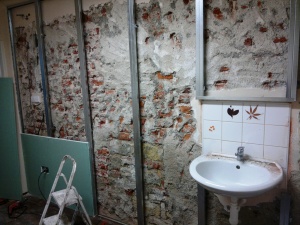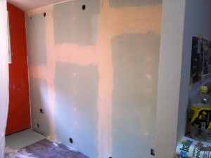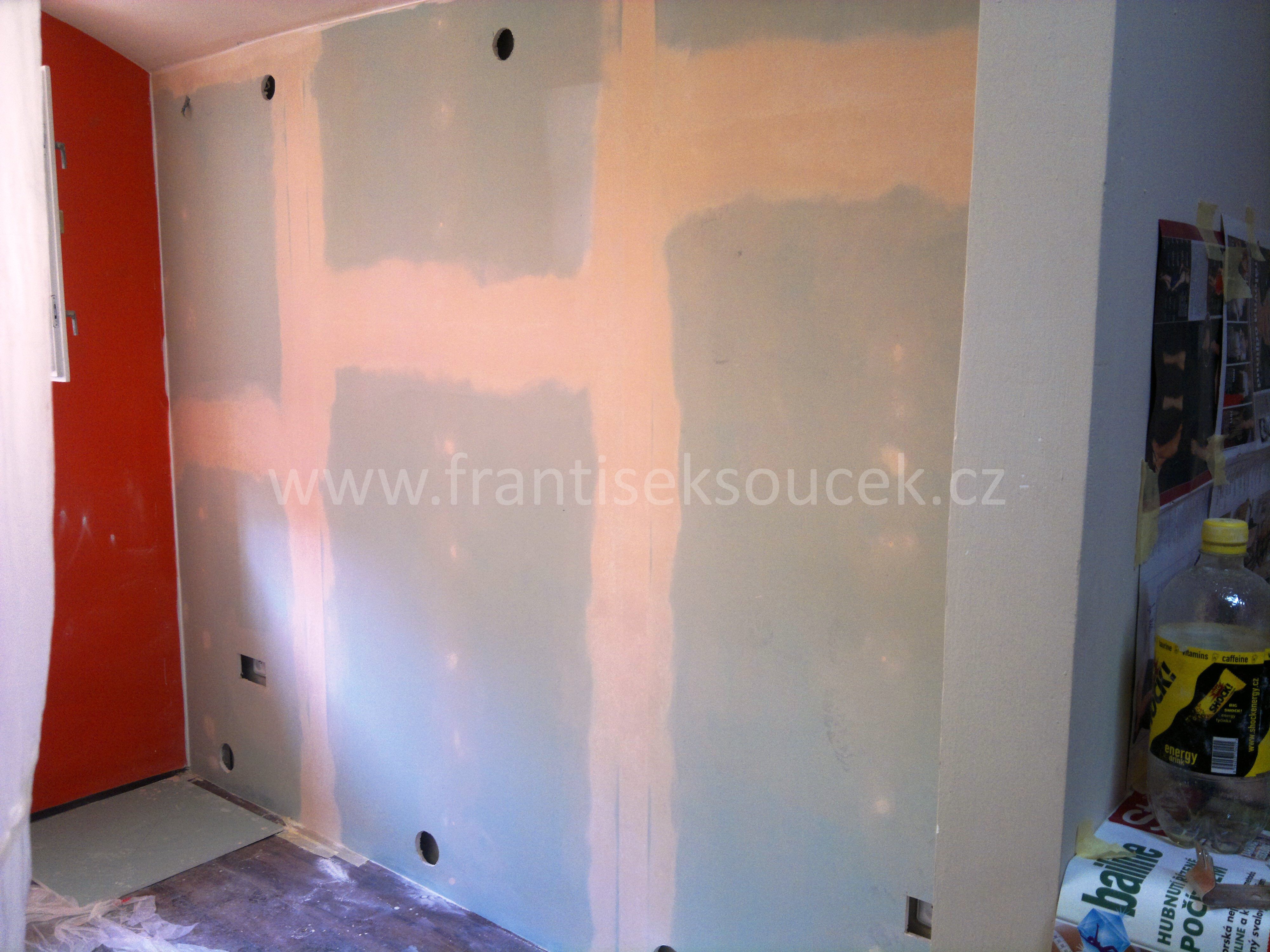 Salon pro ženy Praha 5, předstěna ze sádrokartonu spřažená s nosnou konstrukcí (11 + 1 hodiny)