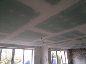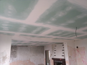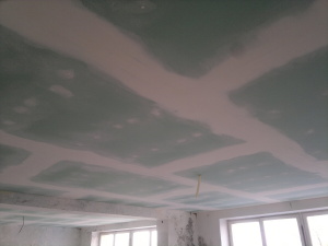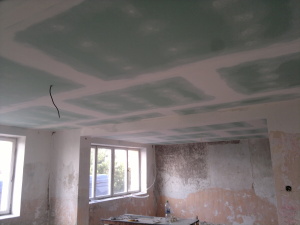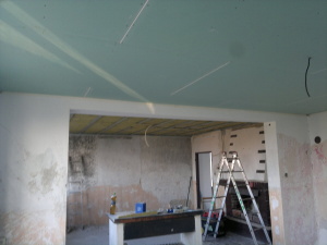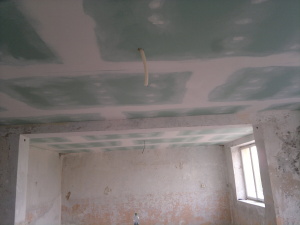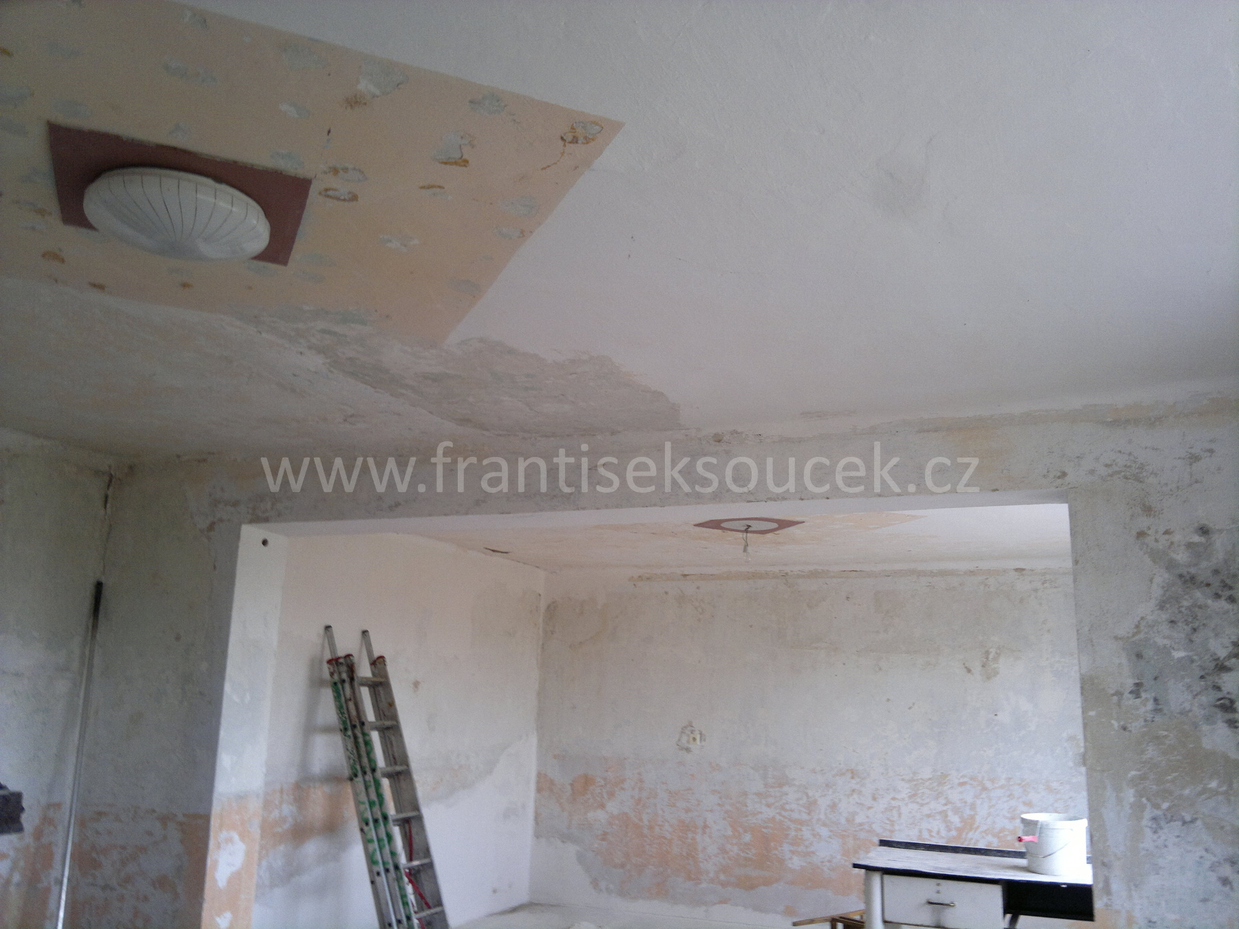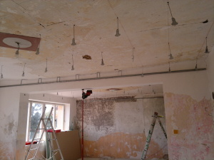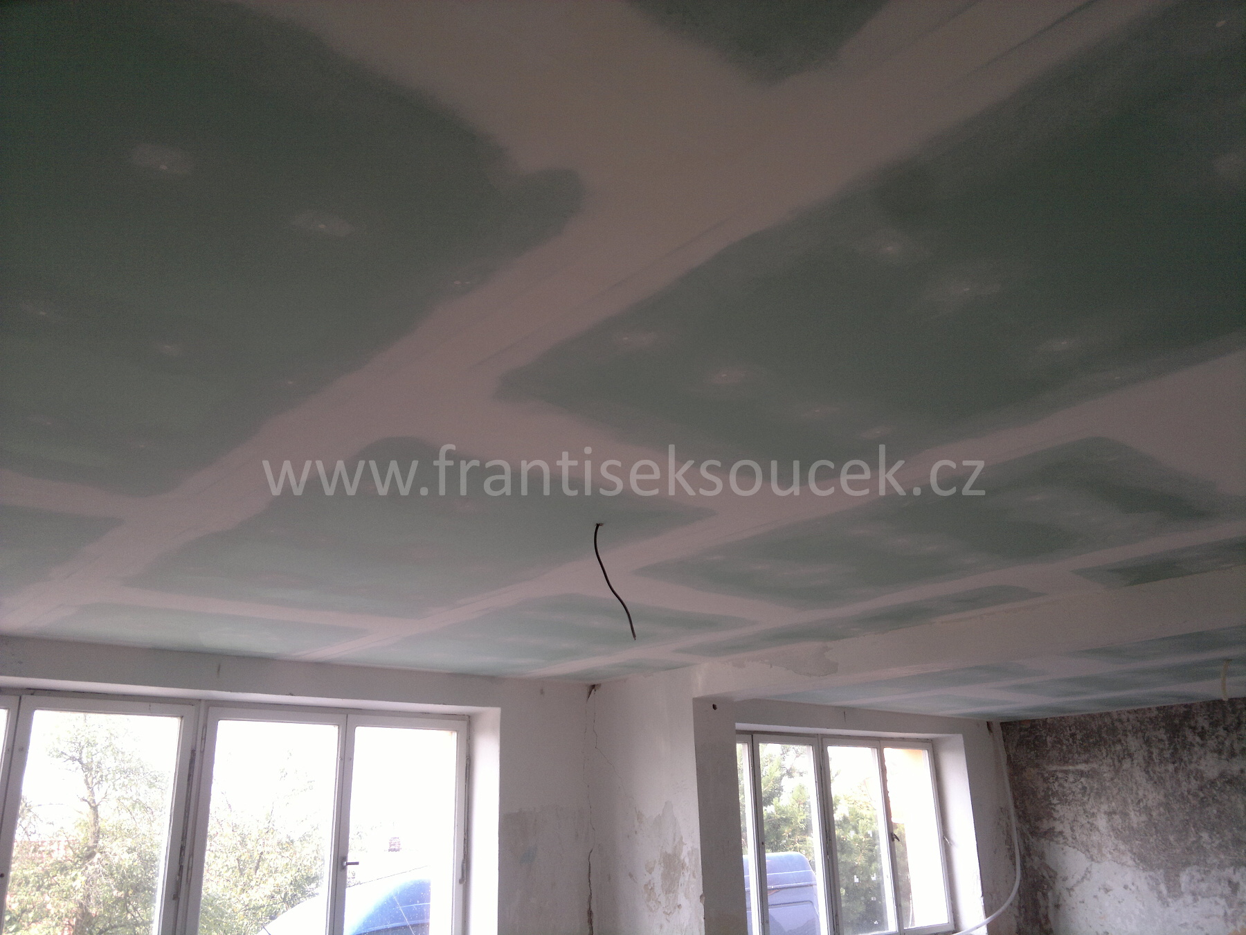 Obec Hradčany, kulturní dům Beseda montáž sádrokartonového podhledu 4.05.23 s vloženou izolací a parozábranou Delta fol reflex 45 m2, 3,5 dne.