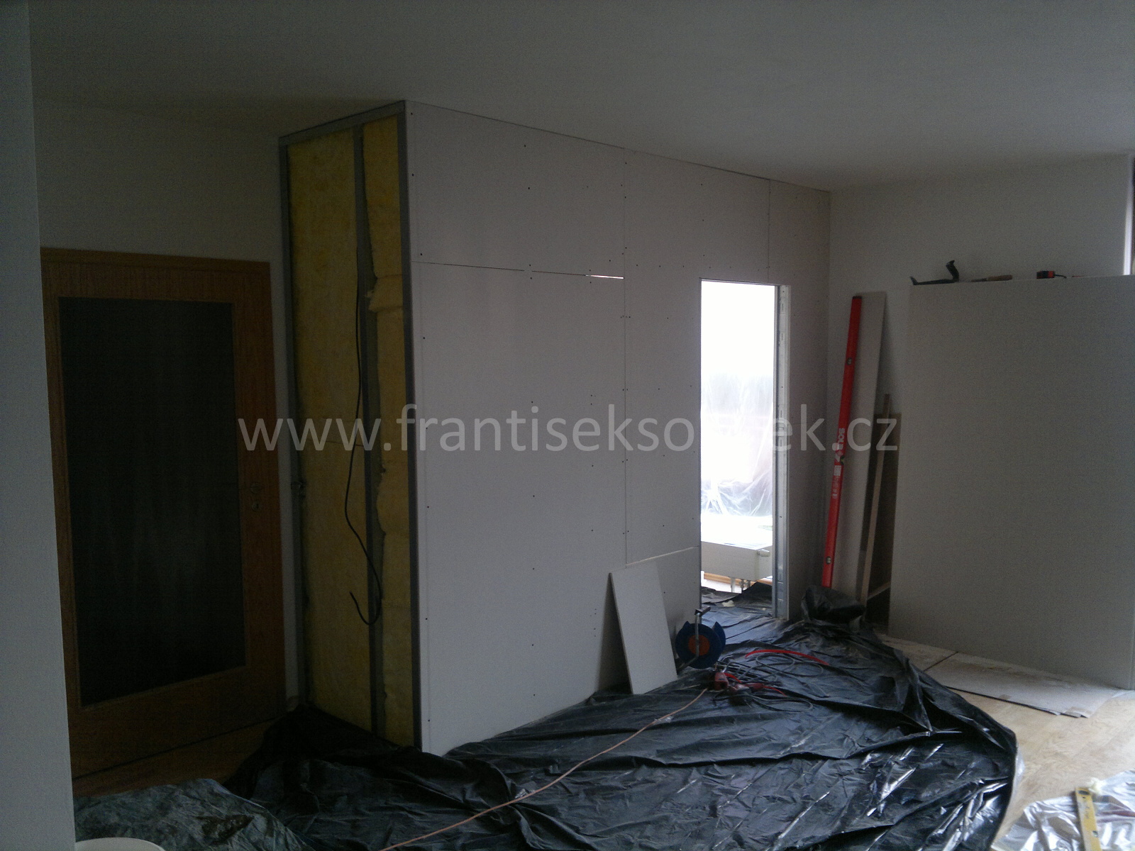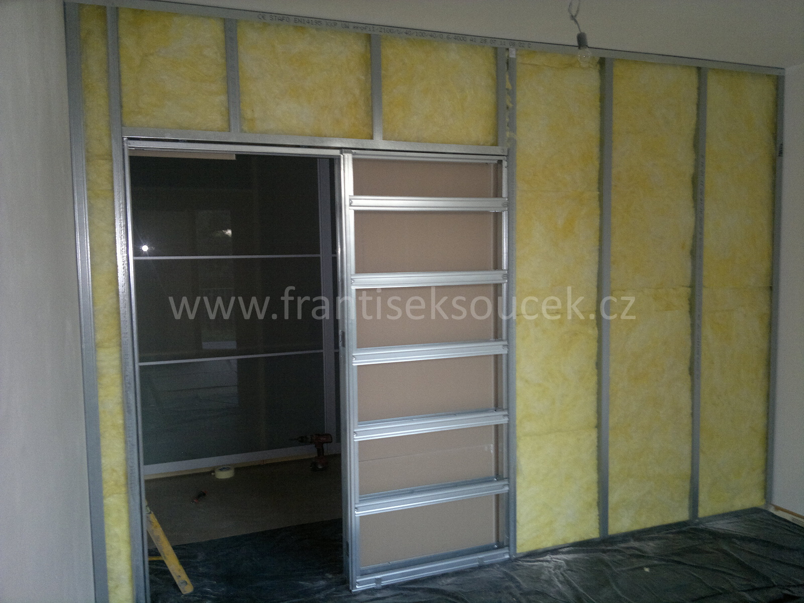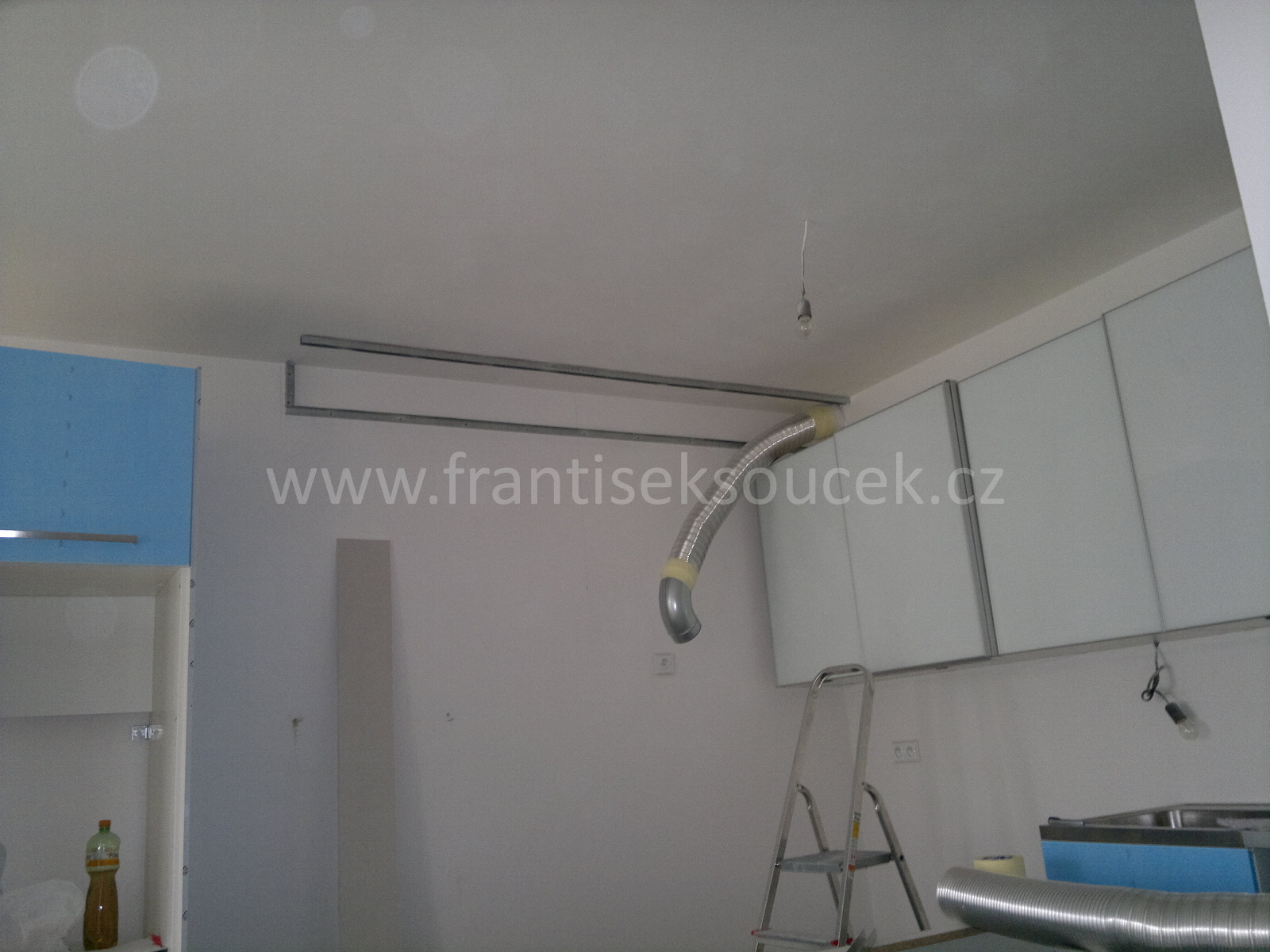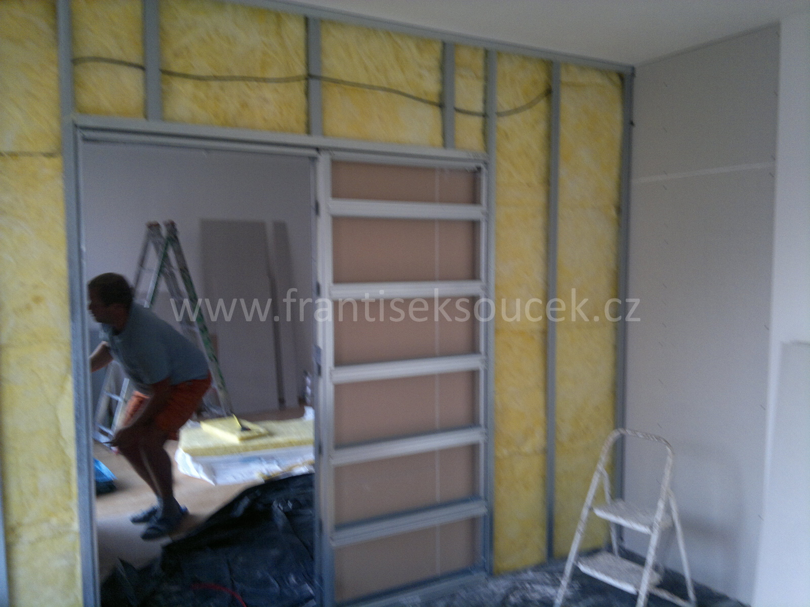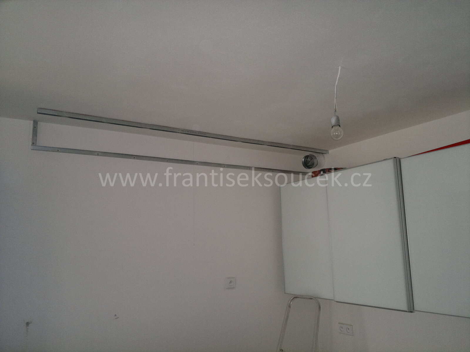 Praha 5 - Nové Butovice, montáž sádrokartonové příčky 3.40.06 SK 14, pouzdro posuvných dveří Eclisse, montáž a opláštění napojení digestoře