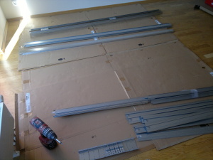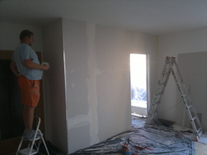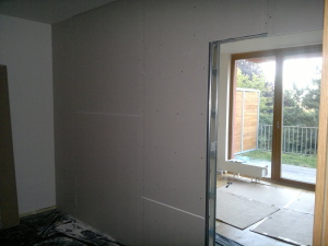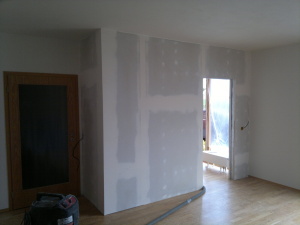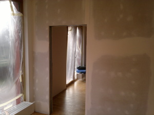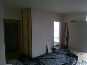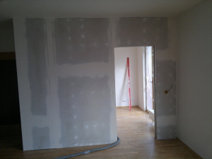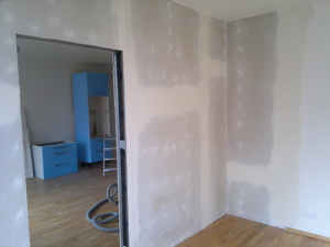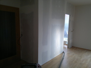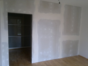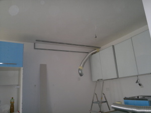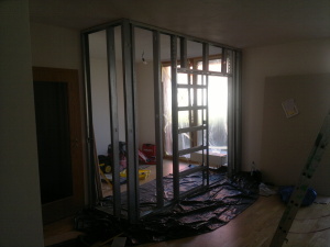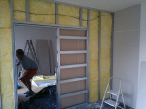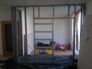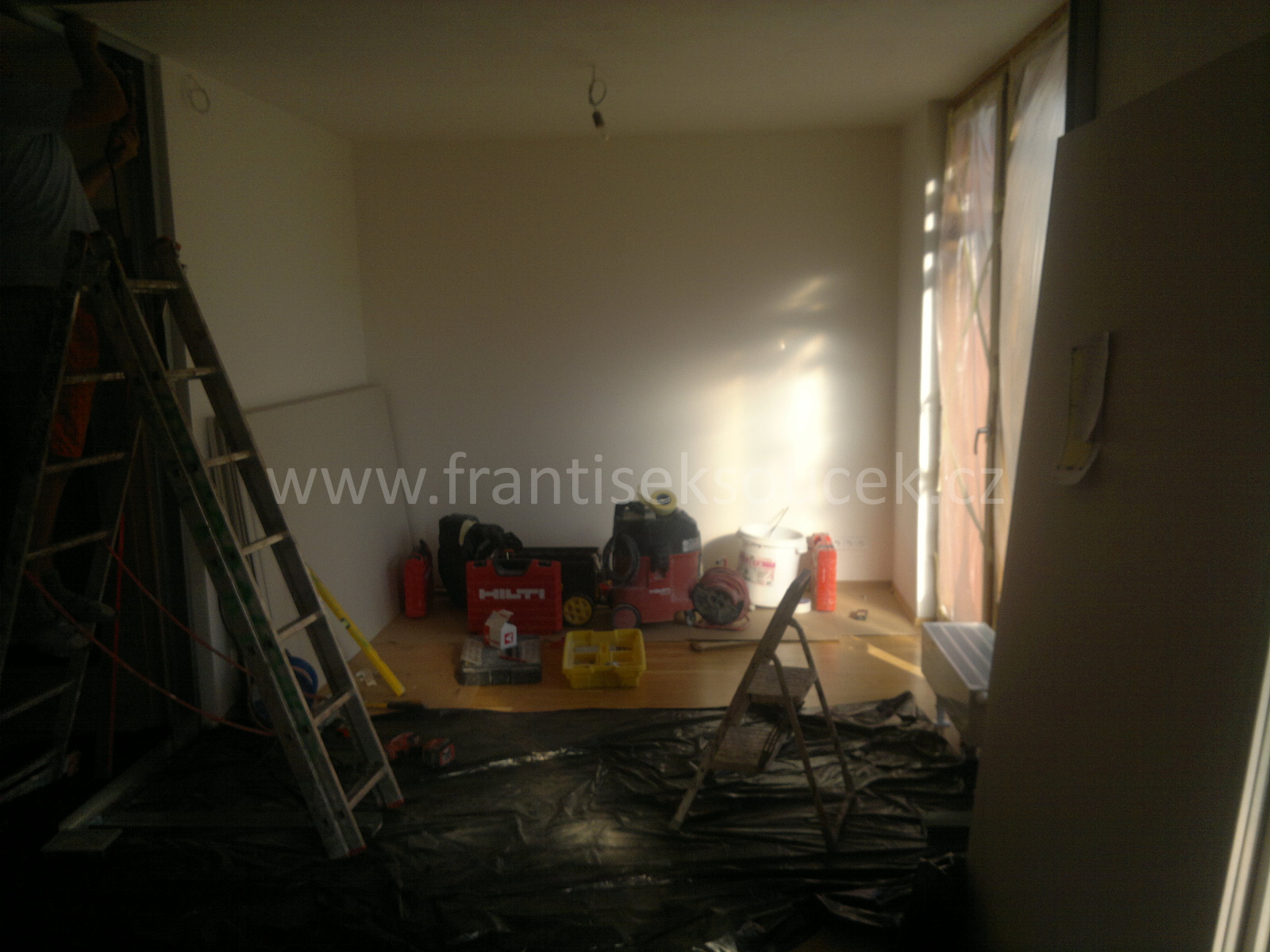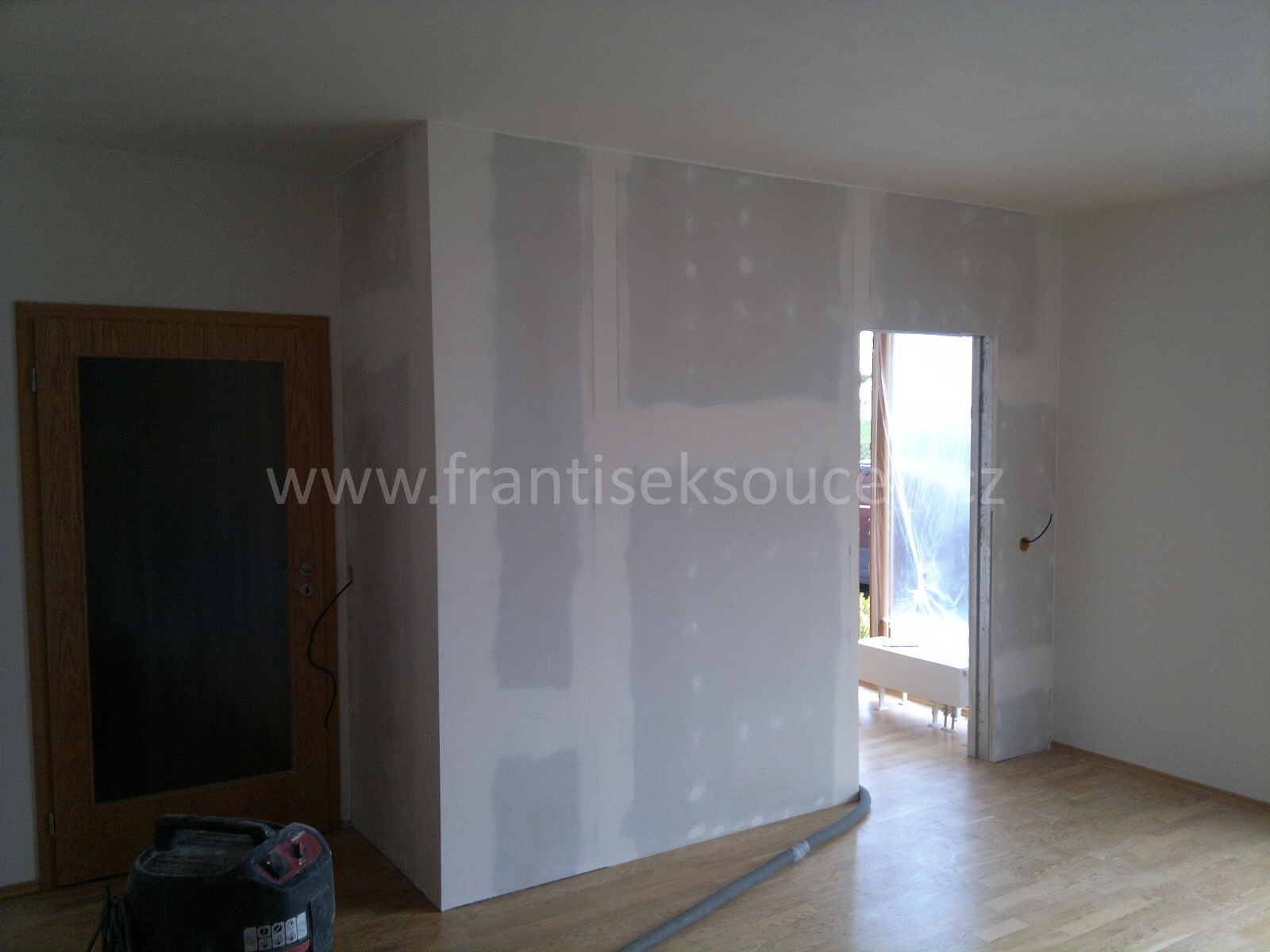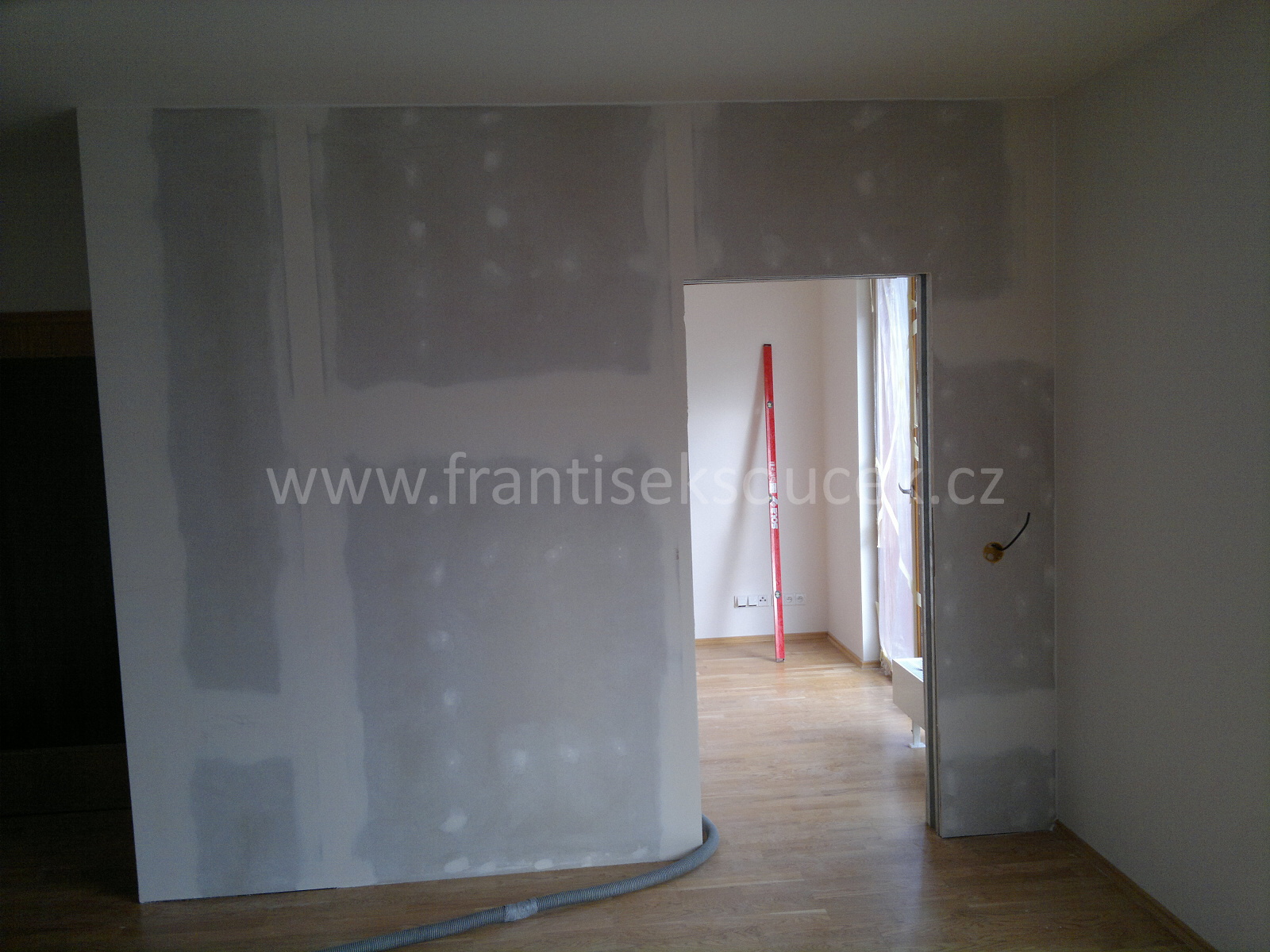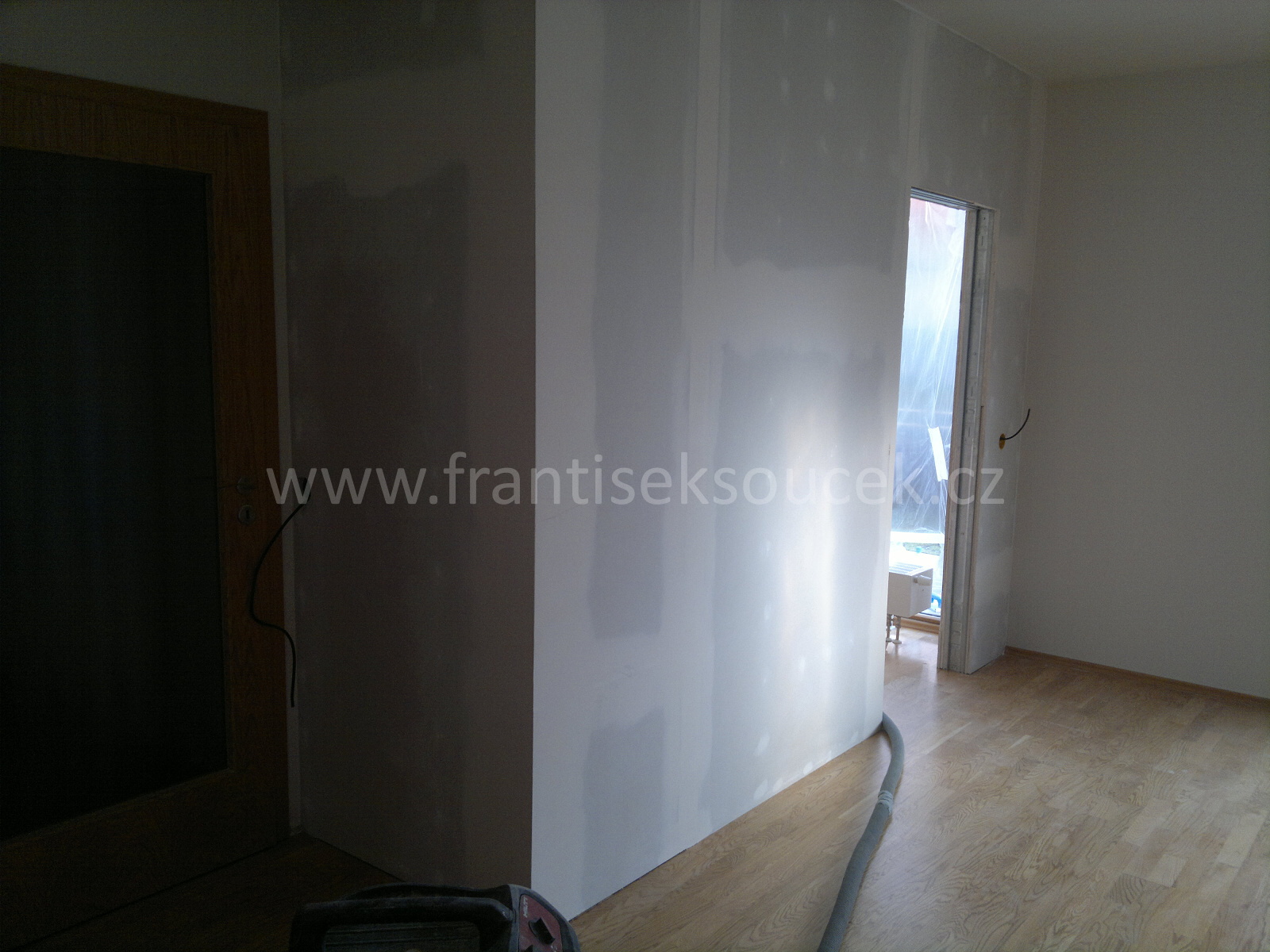 Praha 5 - Nové Butovice, montáž sádrokartonové příčky 3.40.06 SK 14, pouzdro posuvných dveří Eclisse, montáž a opláštění napojení digestoře
