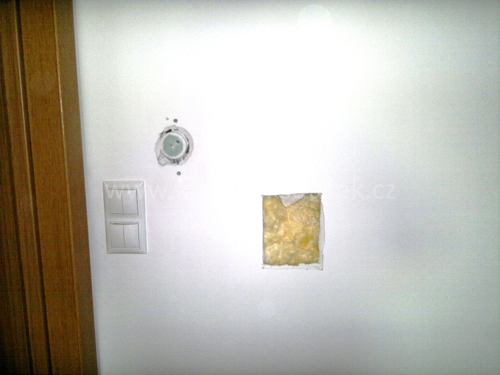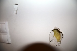 Montáž sádrokartonu, Praha 9 - Prosek, sádrokartonářské práce, oprava děr po stěhování v sádrokartonové příčce.