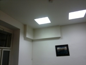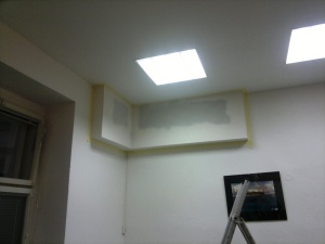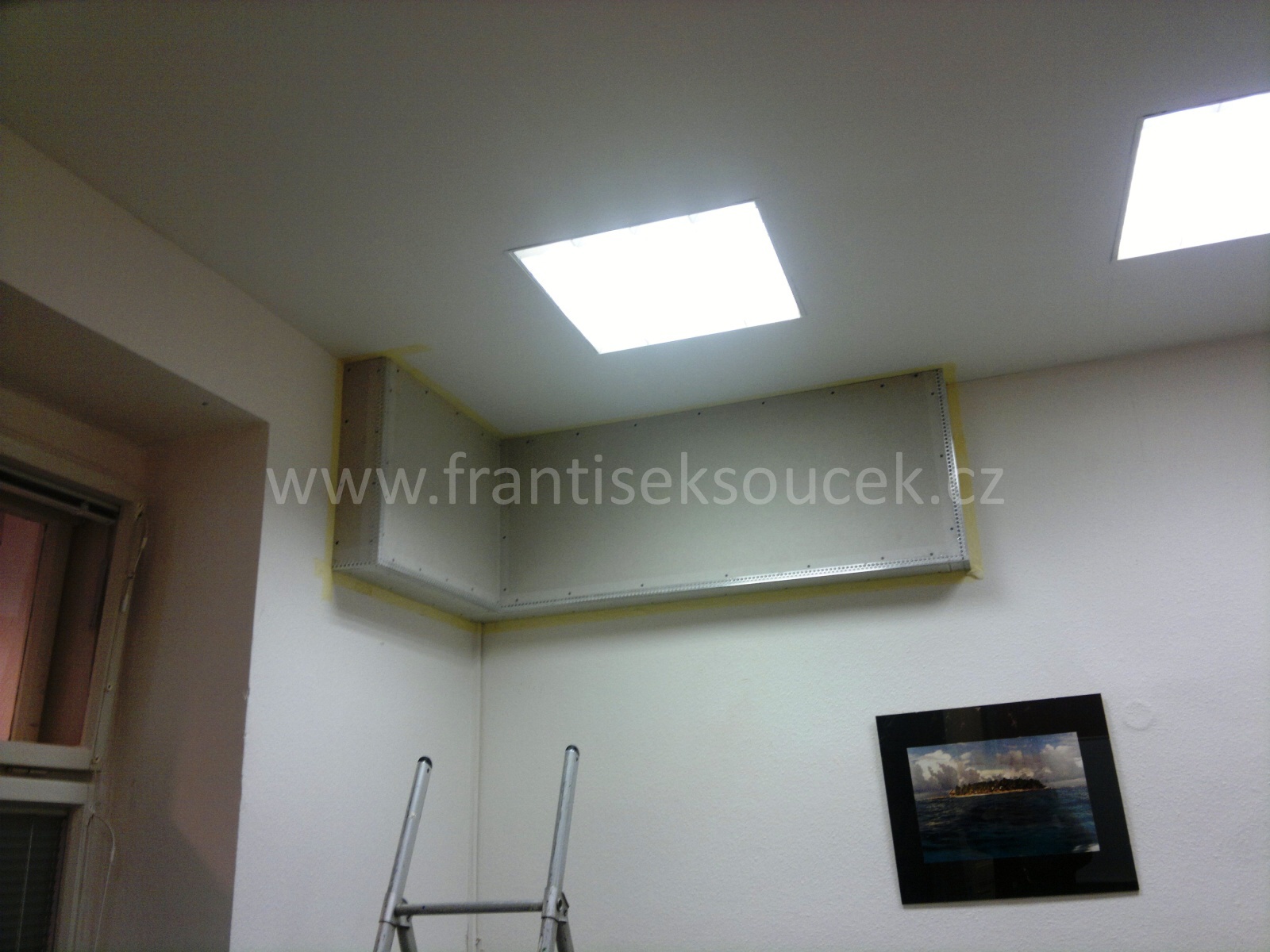 Kastlík ze sádrokartonu Praha 5 – Smíchov, sádrokartonová konstrukce, sádrokarton RB 12,5 mm, malba Primalex plus.
