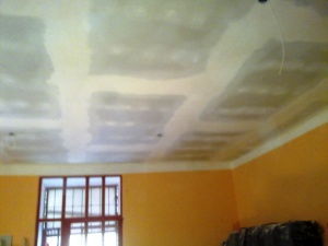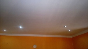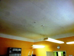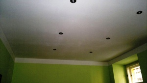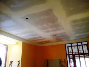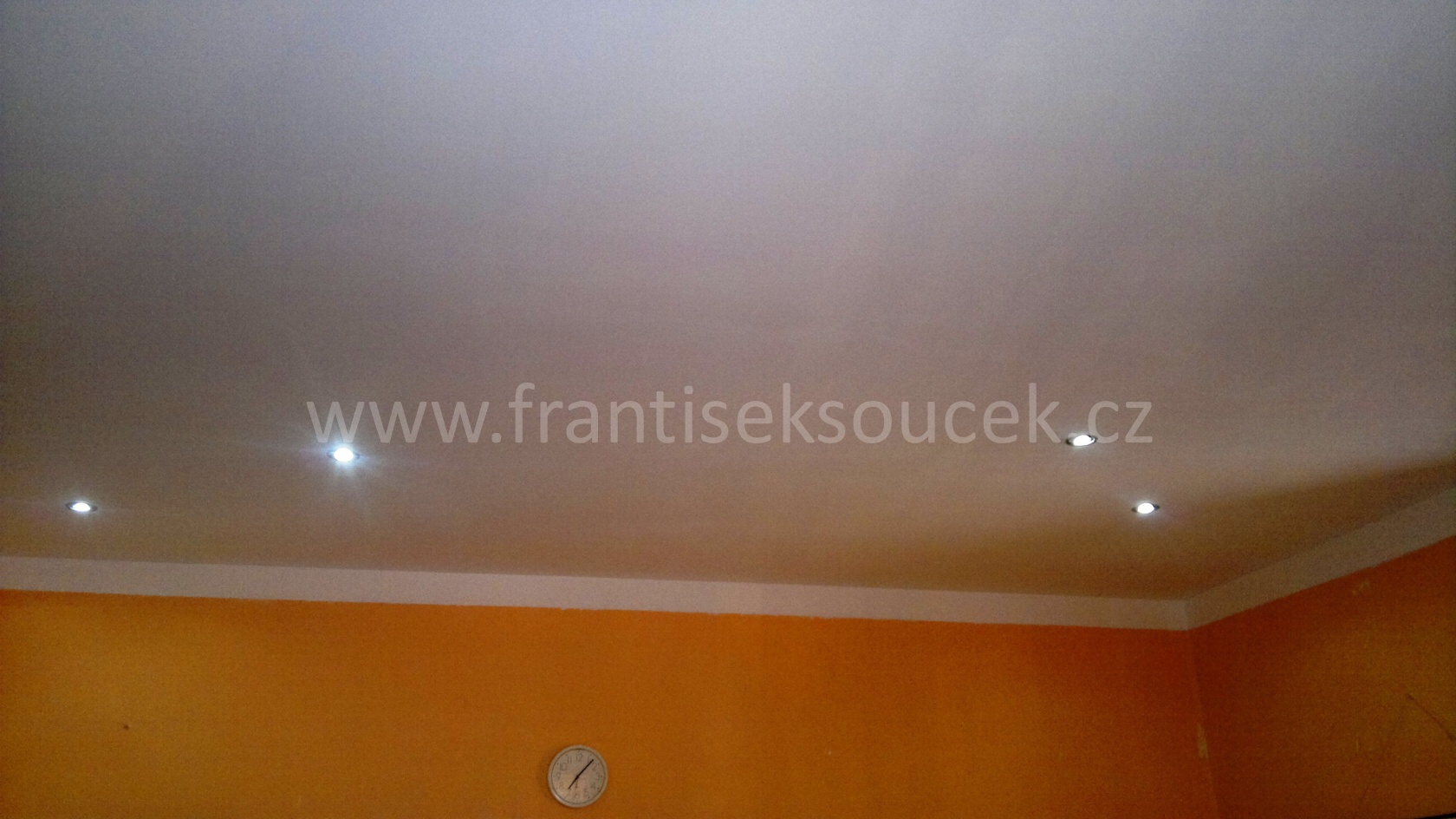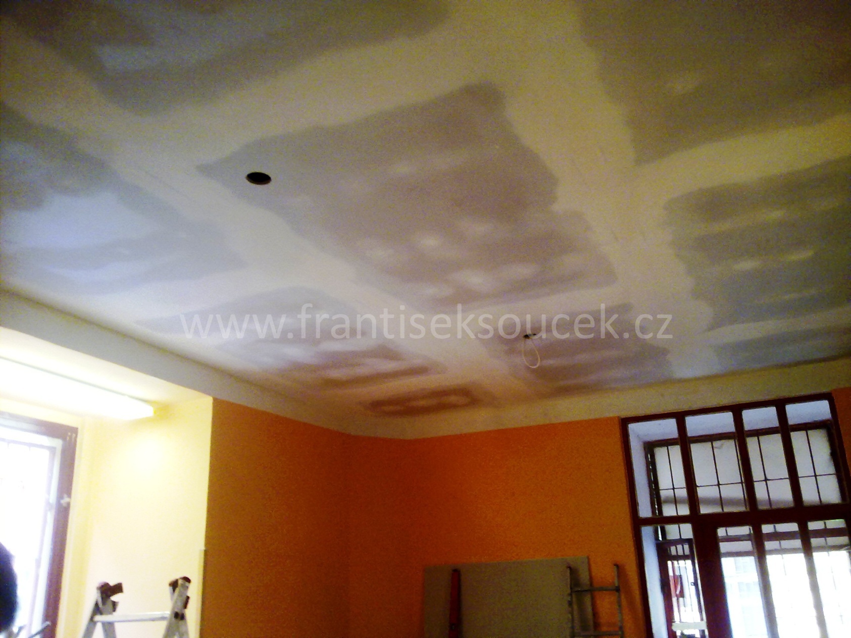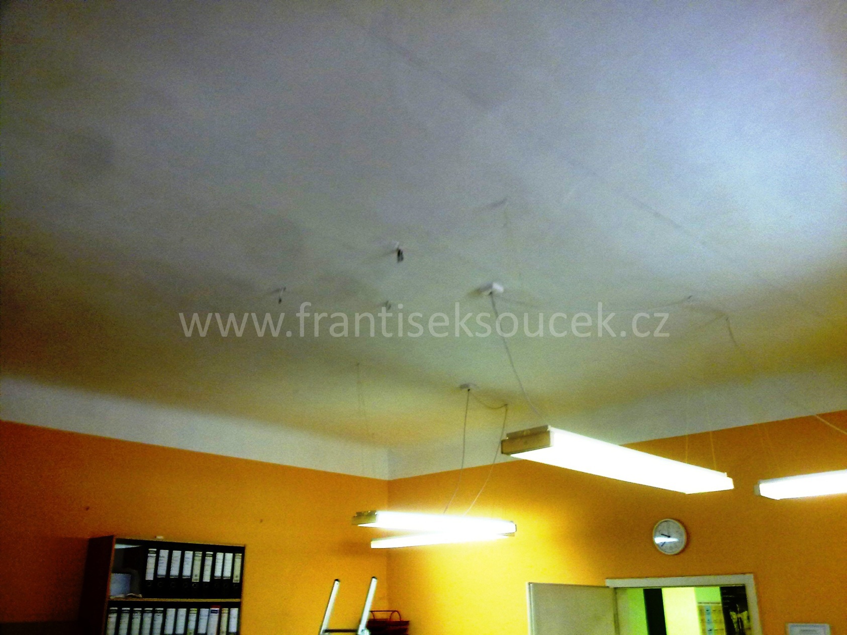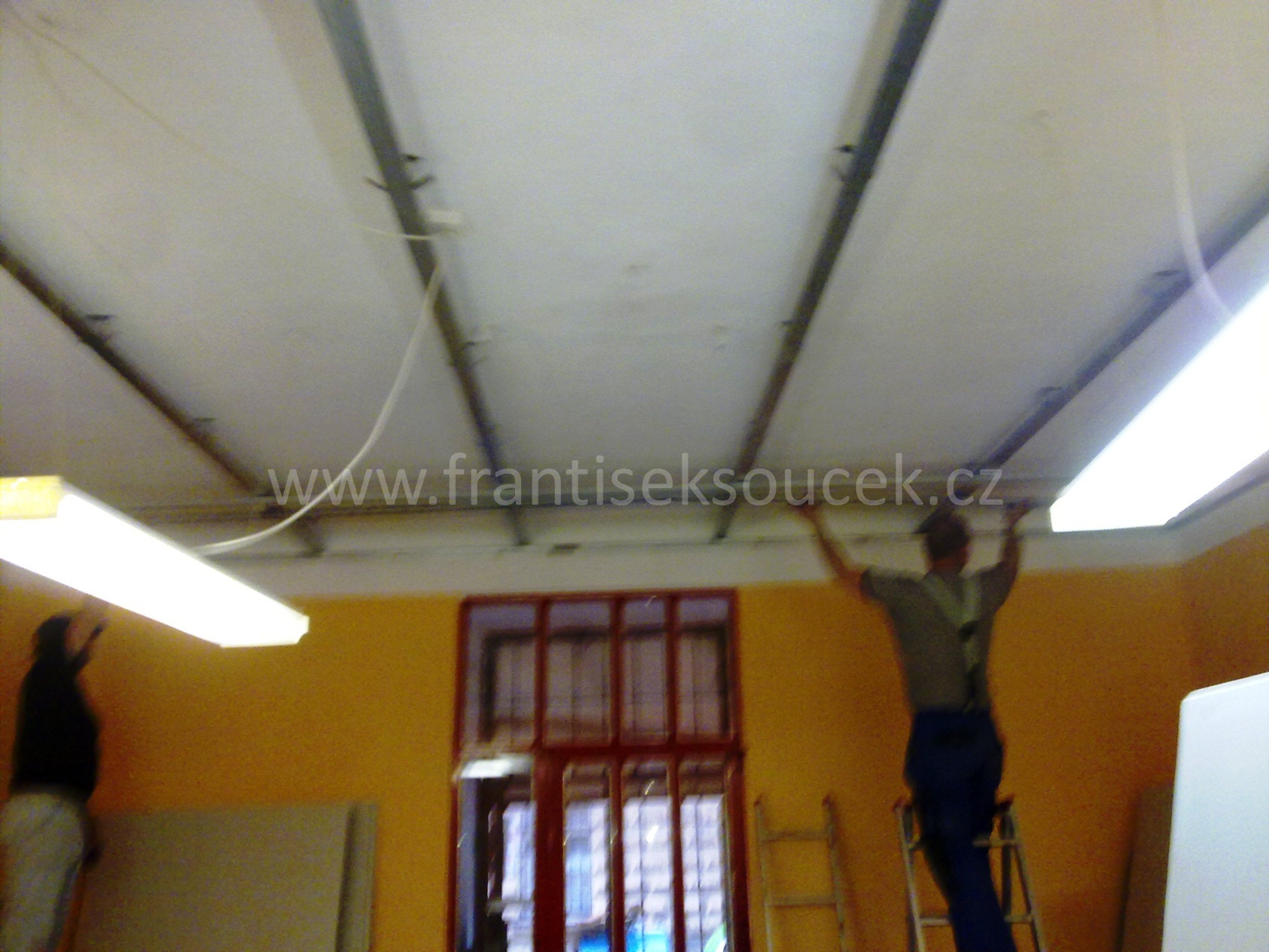 Sádrokartonářské práce, provozovna Autoškola Kříž Praha 5 – Smíchov. Sádrokartonový strop, montáž sádrokartonu, příprava pro montáž LED bodového osvětlení v sádrokartonovém stropním podhledu, Opláštění stropu přímo montované 4.05.23, sádrokartonové desky Rigips 12,5 mm, nika ze sádrokarton pro montáž vestavěné skříně, malba bílá Mistrál. |
