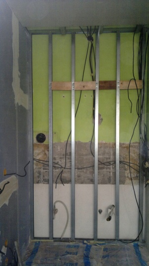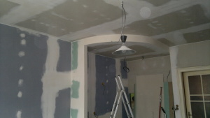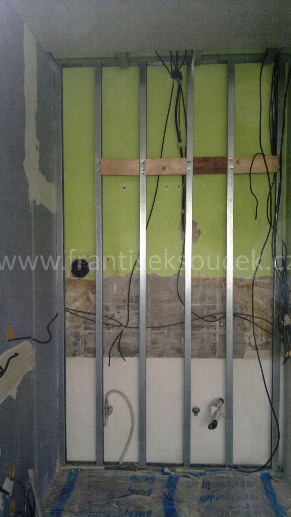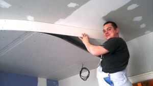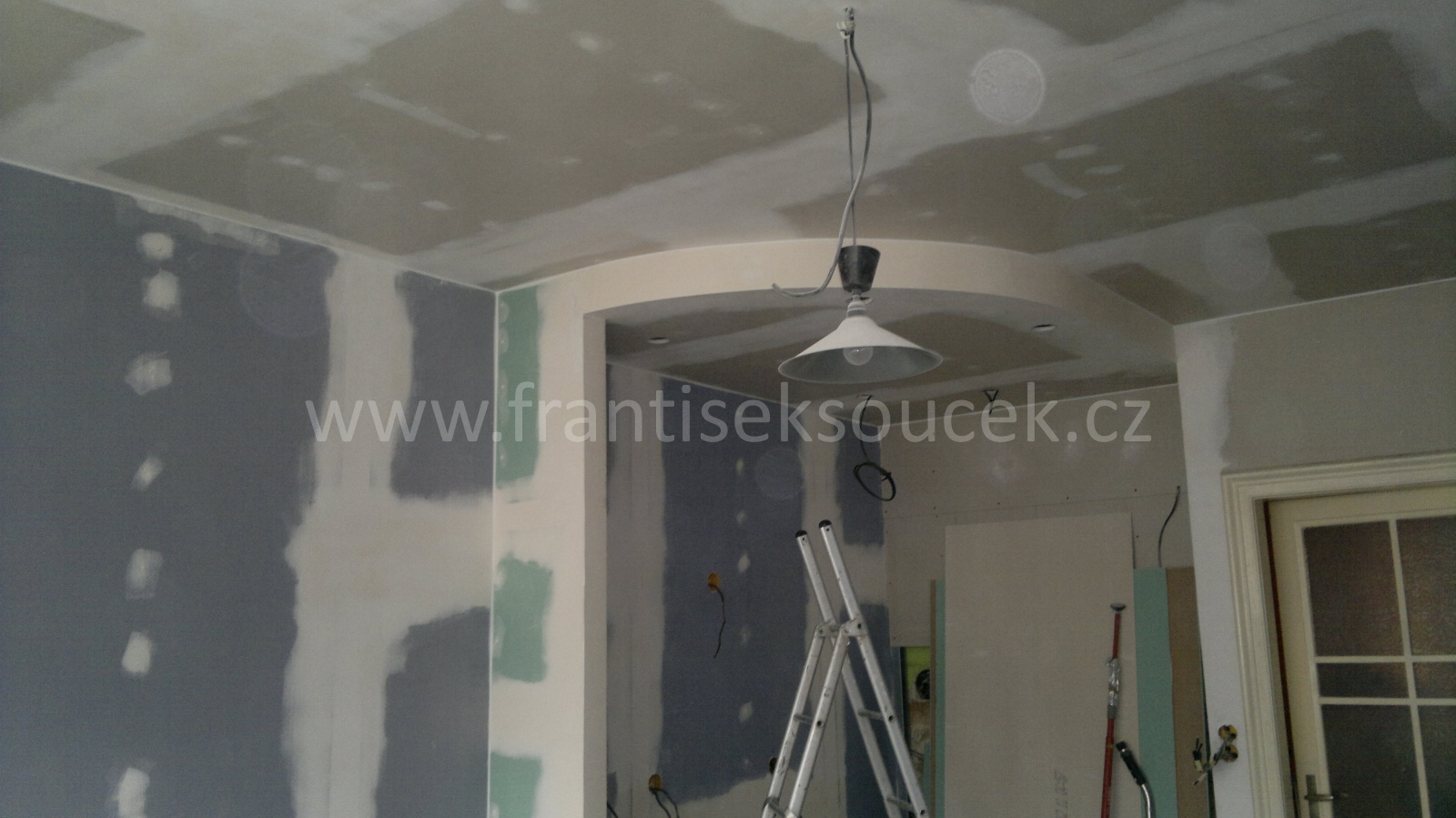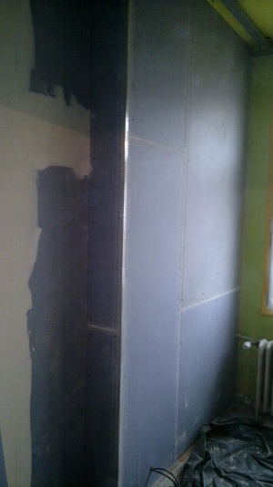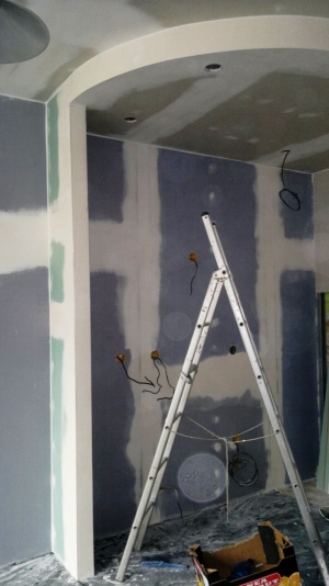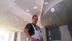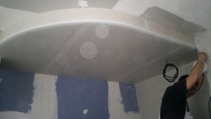 Montáž sádrokartonových konstrukcí Praha 1 - Ujez, akustická sádrokartonové předsazené stěny volně stojící, modrá sádrokartonová deska 3.22.00 MA OK 12, dvojitě opláštěná (modré ticho), akustická izolace MPE 40 mm, stropní sádrokartonové podhledy, montáž sádrokartonové „suché omíkty“ sádrokartonová příčka příprava pro montáž posuvných dveří, vestavba se sádrokartonových desek pro geberit, nika v koupelně s dvířky, sádrokartonová vestavba kuchyně, podhled s obloukem pro montáž bodového osvětlení. Malba MISTRÁL, štukování, rozebrání staré podlahy z parket a vytvoření „suché podlahy“ pro pokládku dlažby. |