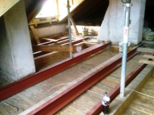 Montáž sádrokartonových konstrukcí suché výstavby a stropní konstrukce, půdní vestavba Praha 6 – Břevnov, odstranění stropního záklopu, ošetření stávajícího trámového stropu a stropní konstrukce Bochemit QB, nová stropní konstrukce U profilu, akustická izolace Rockwool Airock ND, záklop z OSB 25 mm P + B, VZ plech (koupelna, krb), lehká plovoucí podlaha z OSB desek 2 x 15 mm – systém AKUFLOOR, Rockwool Steprock HD 20 mm, mezi bytová instalační příčka dvojitě opláštěná, kovová dvojitá konstrukce (s mezerou cw 75 mm), požární odolnost EI 60, izolace Isoover AKU 60 mm vzduchová neprůzvučnost minimálně 62 db, instalační sádrokartonová příčka Rw = 54 dB, příčka cw 50 dvojitě opláštěná ze sádrokartonových desek RBI 12,5 mm, zvuková neprůzvučnost 51 dB, suchá omítka (lepený sádrokarton), předsazená sádrokartonová stěna s vloženou tepelnou izolací Isoover UNIROL Profi tl. 120 mm, opláštění boků vikýřů ze sádrokartonových desek z vloženou tepelnou izolací Isoower UNIROL Profi tl. 100 mm, Obklad střechy / podkroví na CD 4.70.14a požární odolnost REI 30 minut, vložená tepelná izolace mezi krokve tl. 160 mm Isoover Unirol Profi a Isoover UNI tl. 50 mm nad cd profil. Stavební část, betonáž vaničky sprchového koutu, obklad a dlažba, vyztužení komínu, jádrová omítka, keraštuk, vyzdění stěny z Luxfer BLOCK SYSTÉM. Elektroinstalace. Zdravotechnika. |