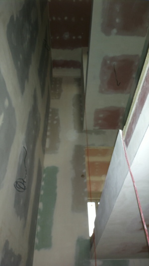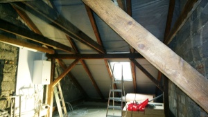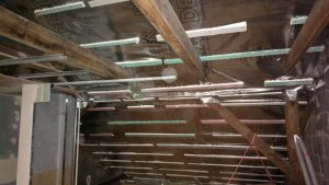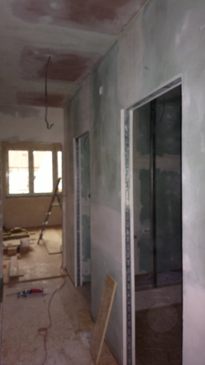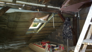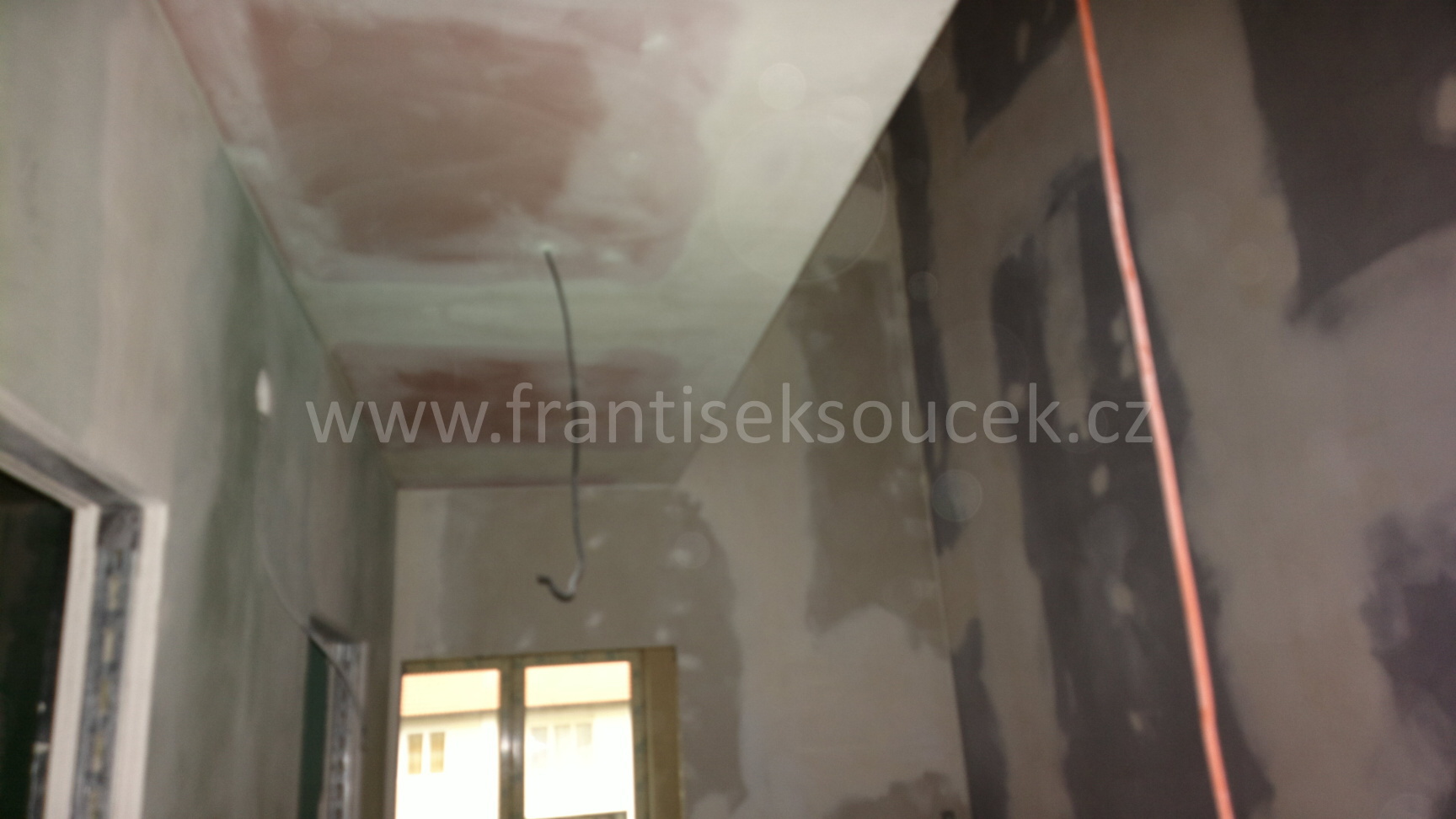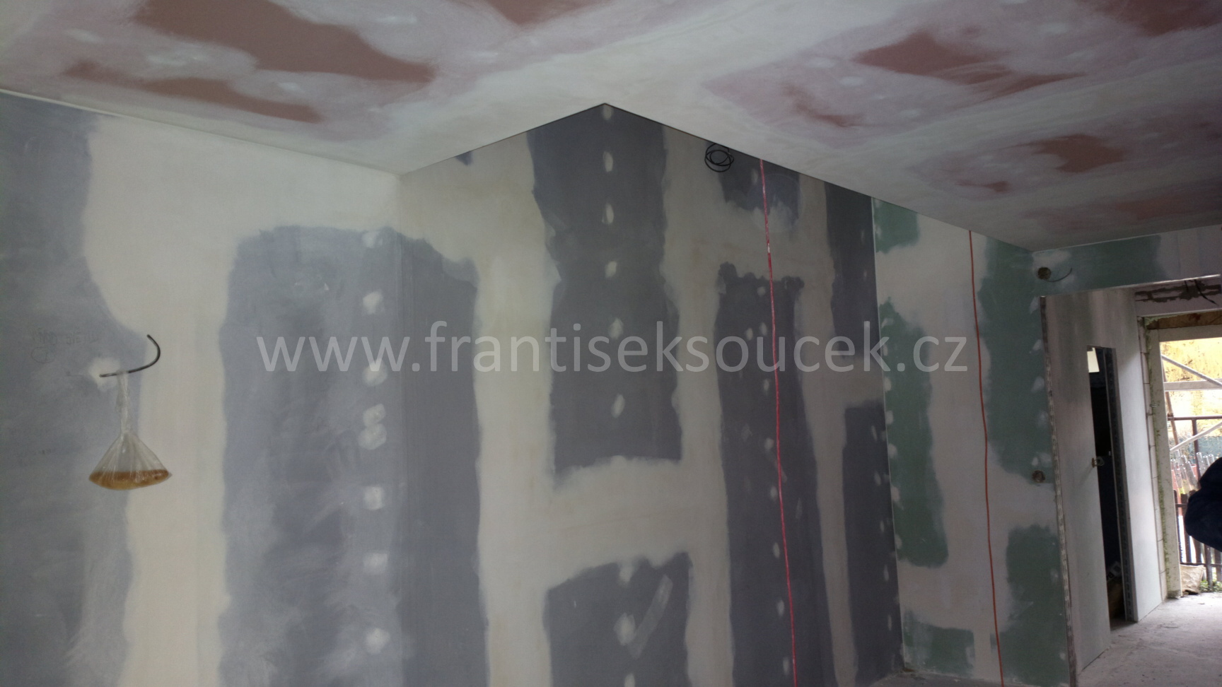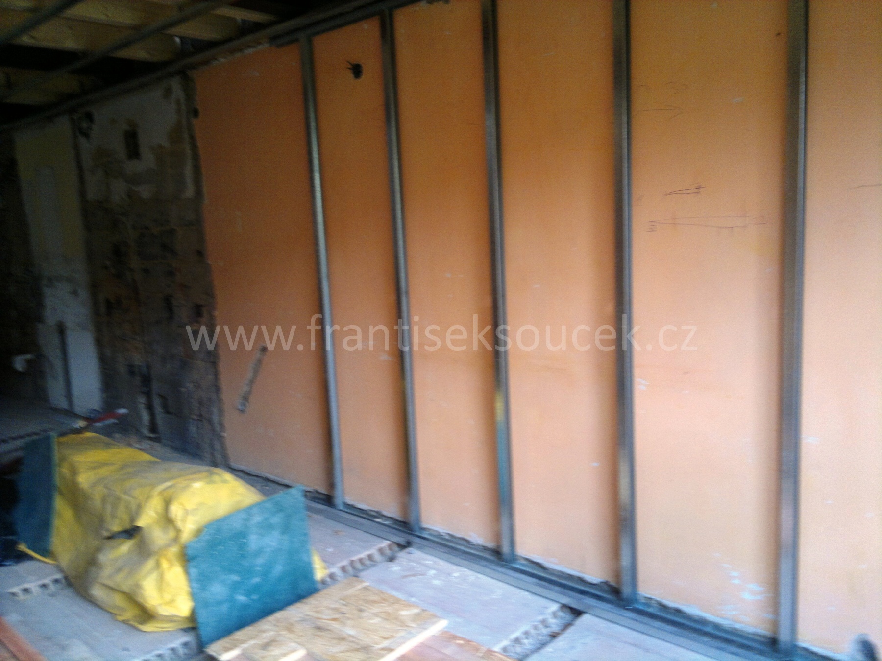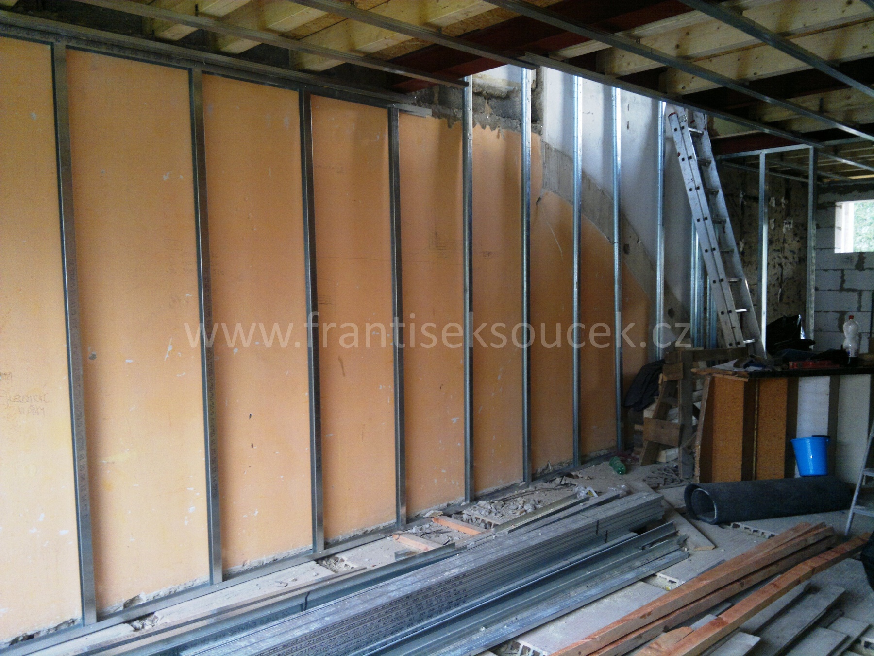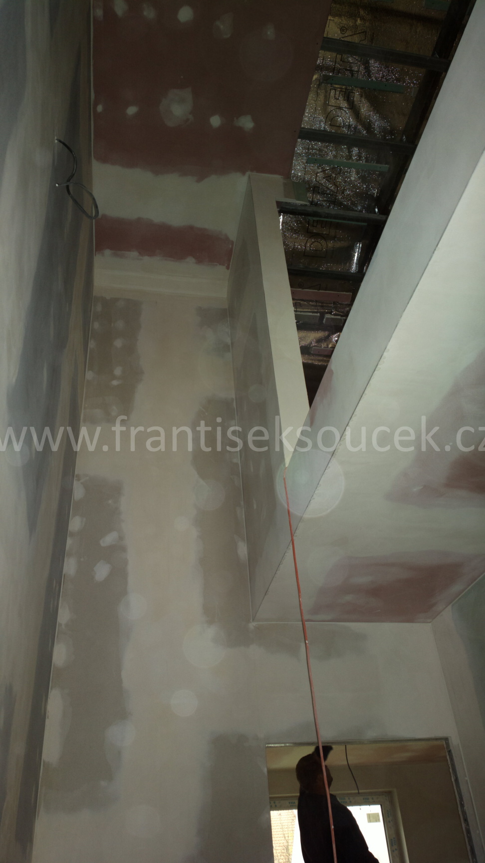 Systém suché výstavby Knauf, RD Dětská ulice, Praha 10 – Strašnice, Strop dřevěný D 152 stropní obklad z desek KNAUF RED 12,5 mm na ocelové konstrukci zavěšen na systémové závěsy REI 60 minut, W 112 sádrokartonová příčka jednoduchý rastr, dvojité opláštění, izolace Isover AKU 40 mm., sádrokartonová příčka W 115 dvojitý rastr dvojité opláštění, izolace Isover AKU 40 mm., Akustická předsazená stěna W 625 DIAMANT 12,5 mm, podkroví Knauf K 311 – 3 opláštění podkroví s kovovou nosnou konstrukcí, izolace ROCKWOOL ROKMIN 200 mm, parozábrana DELTA FOL REFLEX, parotěsná folie okolo střešních oken VELUX. |