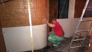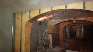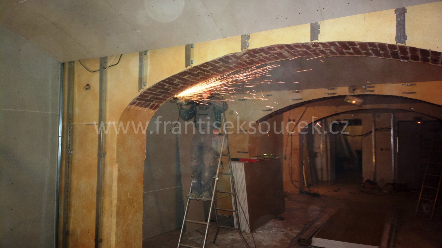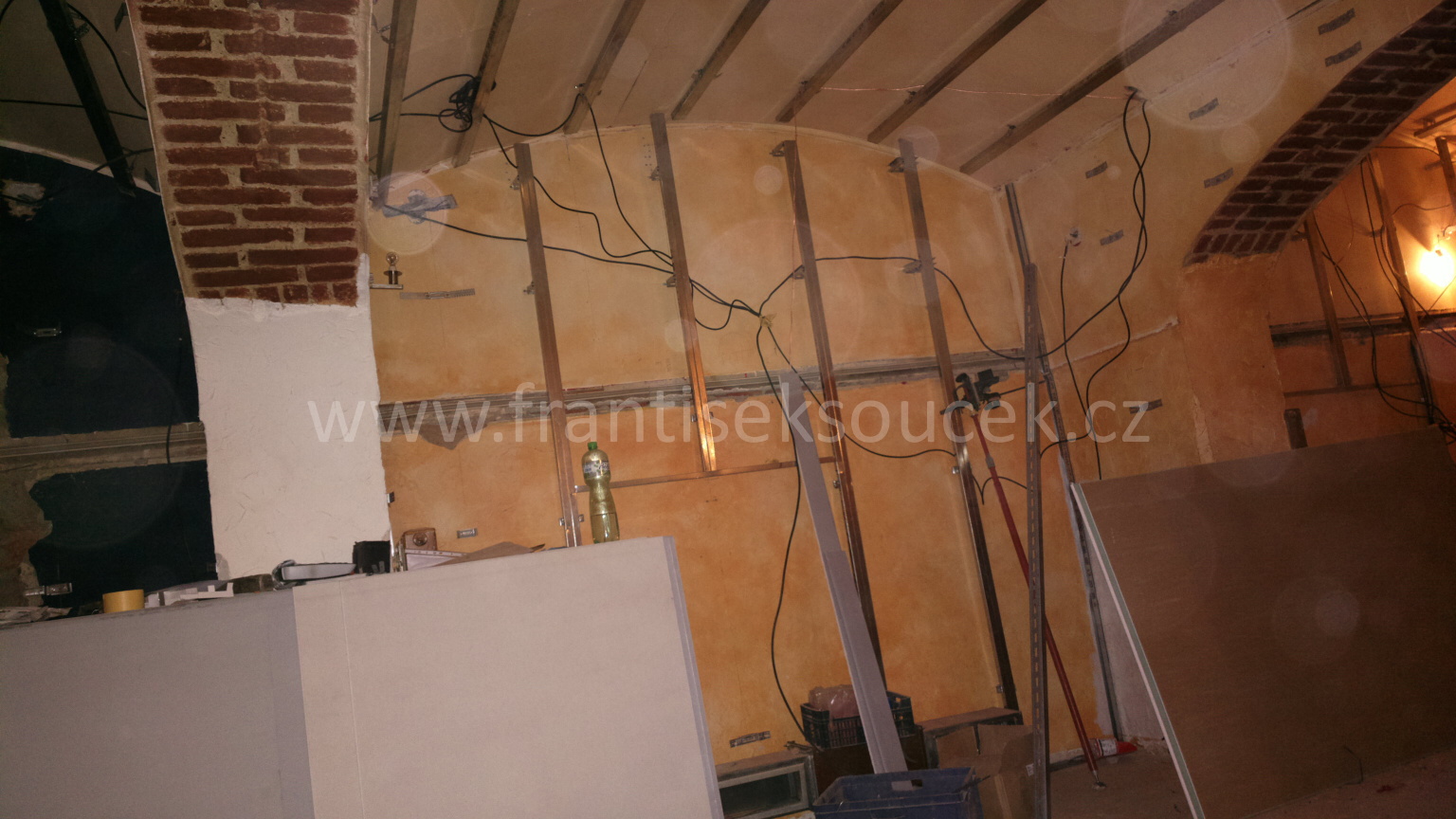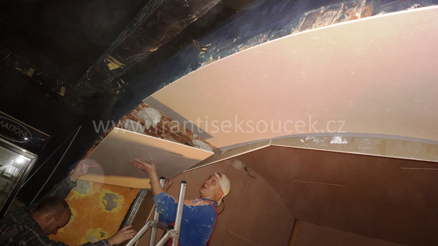 Music Bar Rodeo - Praha 2, montáž suché výstavby Knauf (sádrokartonová příčka W 112 dvojité opláštění deskou Knauf Diamant 12,5 mm, předsazené stěny jednoduše opláštěné deskou Knauf White, tvrzená akustická sádrokartonová deska Knauf Diamant 12,5 W 625, opláštění stěn suchá omítka W 611 lepení Knauf Perlfix, Sádrokartonové stropy D 112 na CD profilech, obklad klenb stavební ohebnou deskou Knauf White 6,5 mm sádrokartonová klemba, montáž revizních klapek, ochrana rohů al profilem, páska výstužná skelná, tmelení Knauf Q3 a Q4 Uniflott, celoplošné tmelení Knauf GELBBAND, Uniflott FINISCH, sádrová omítka , bourací a vyklízecí práce, zednické práce, vyzdění podia a sezení z ytongu, suchá podlaha 2x OSB 18 mm pod marmoleum, obkladačské práce a dlaždické práce, nový potěr WEBER bat potěr, řemesla, výmalba, stavební výpomoc, příprava pro montáž bodového osvětlení, montáž výustek VZT, likvidace odpadu. |
