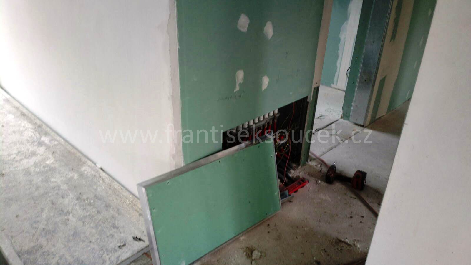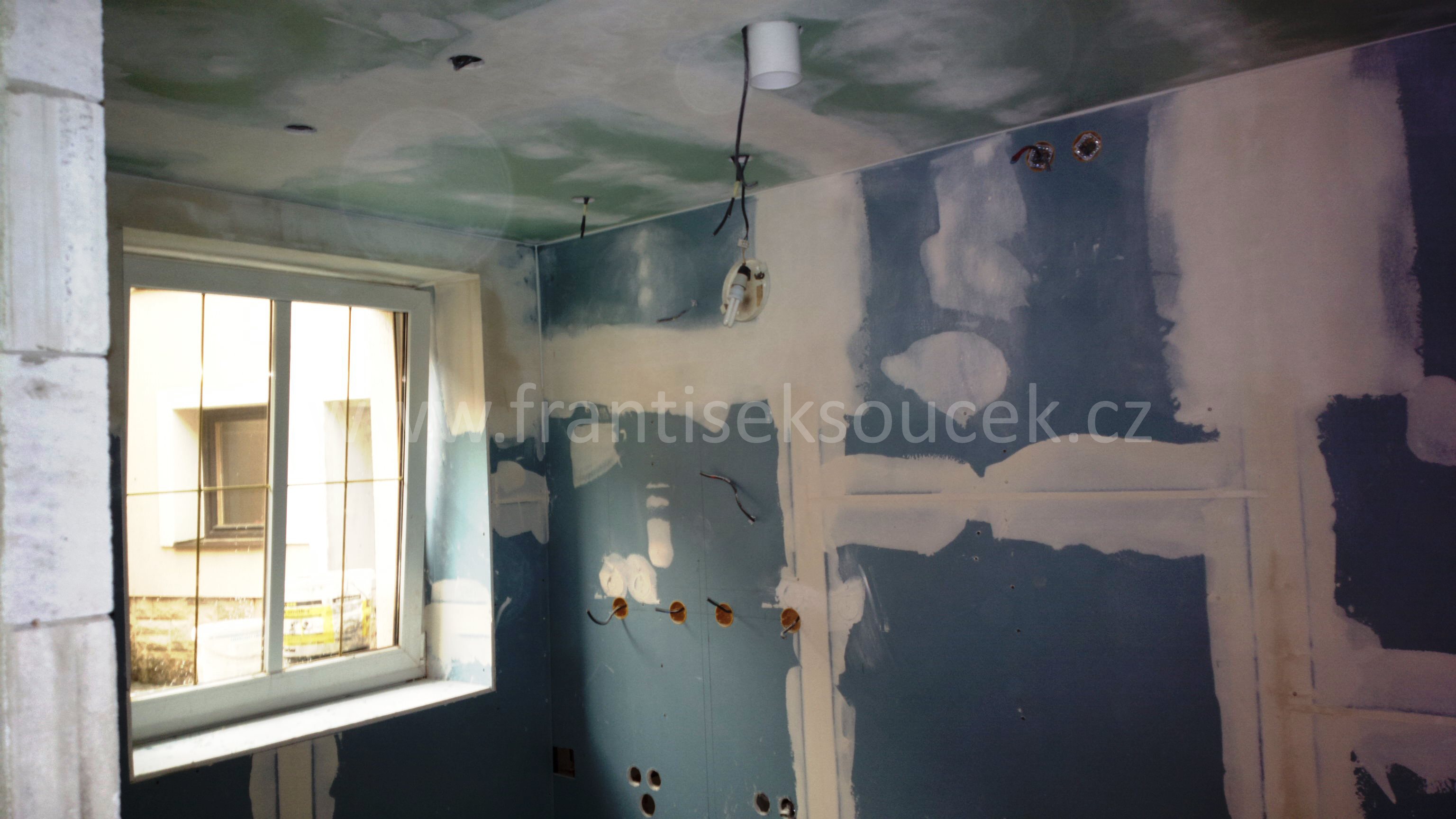 Praha 5 - Hlubočepy, montáž sádrokartonových konstrukcí suché výstavby, předsazená stěna volně stojící na CW 50 mm profilech opláštěná deskami Knauf Diamant 12,5 mm, suchá omítka, sádrokartonová předstěna spřažená s nosnou konstrukcí z CD a UD profilů na přímých zavěsech , okenní špalety, sádrokartonové podkroví s vloženou reflexní parozábranou a tepelnou izolací, koupelnové jádro ze sádrokartonových předstěn, snížený strop na rákosovém podbití D112 na dvojité kovové konstrukci z CD a UD profilů opláštěno deskou RB (RBi) 12,5 mm, stropní konstrukce D135, okenní parapety, revizní otvor do sádrokartonového podkroví 1300 * 900 mm, příprava pro montáž osvětlení z LED bodovek, výmalba, stavební příprava pro montáž radiátoru (výstuhy) |