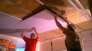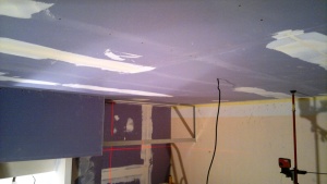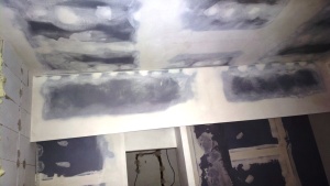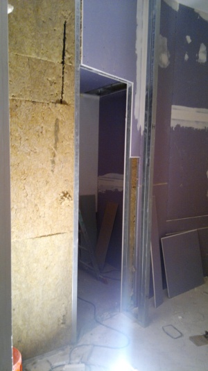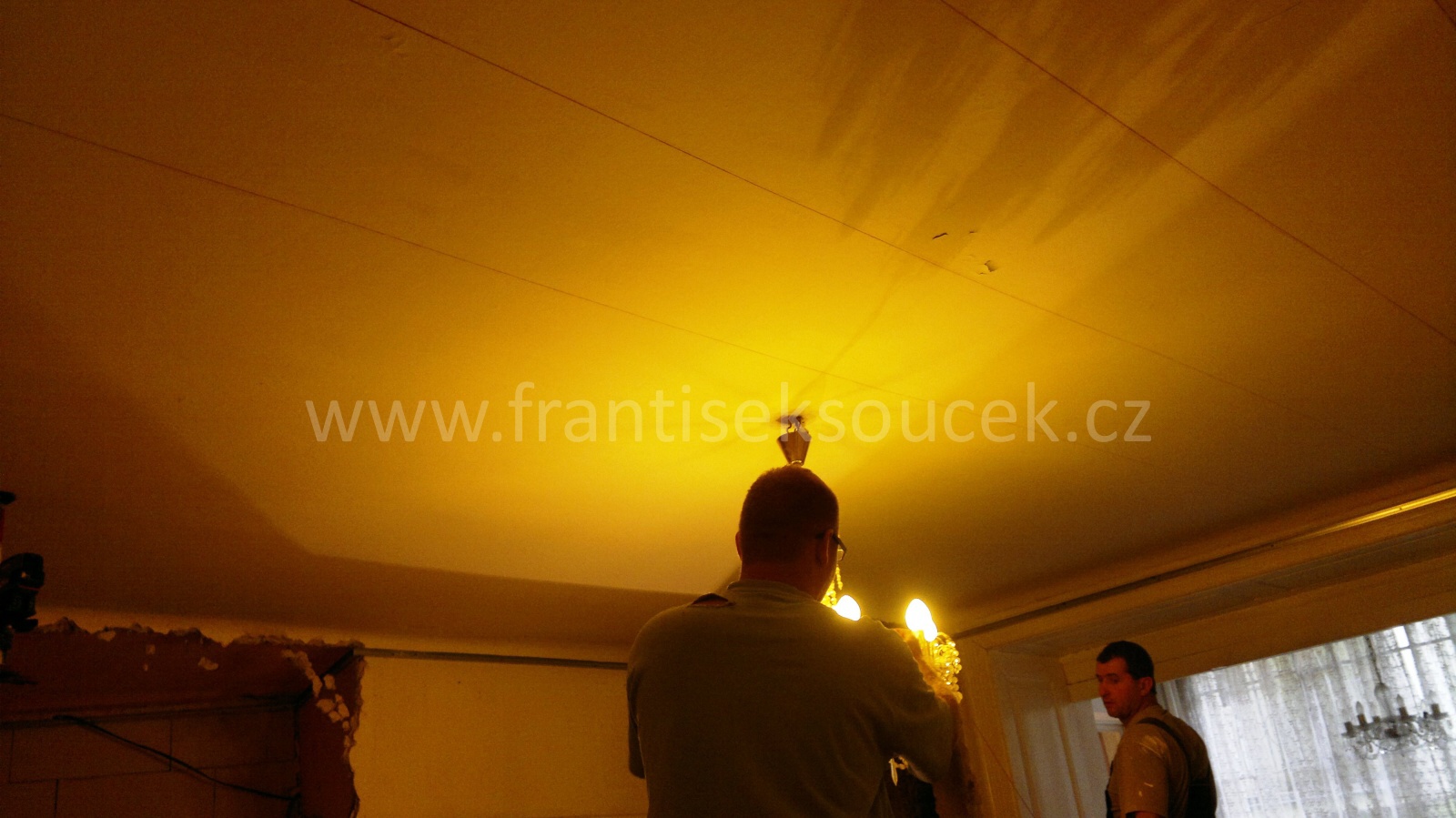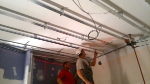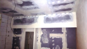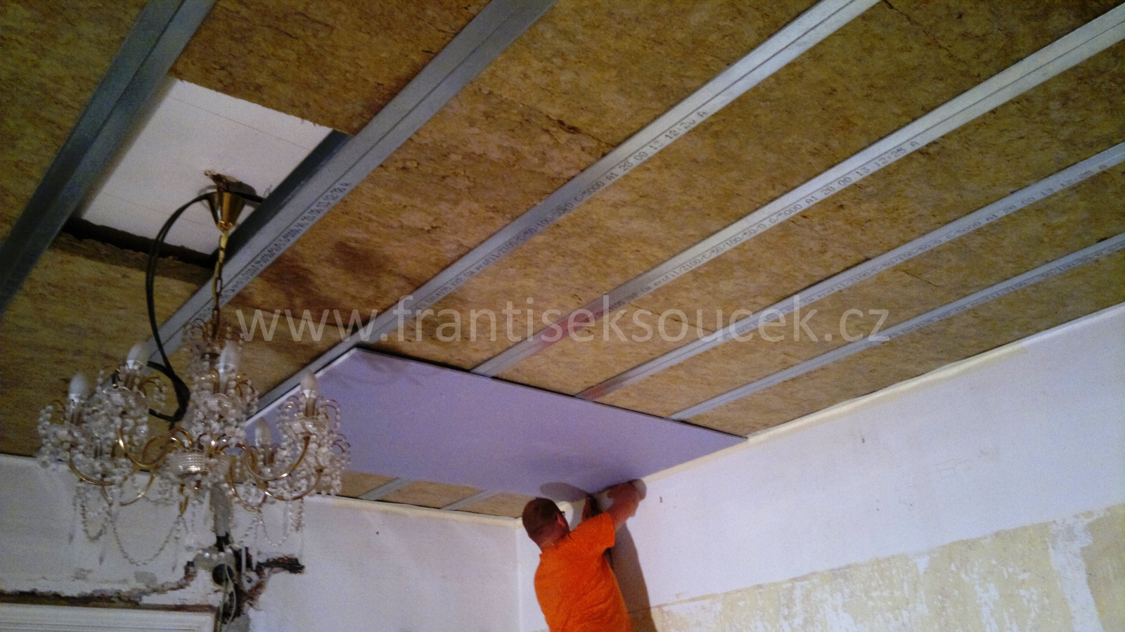 Modré akustické systémy, Praha 1 - Josefov, Maiselova ulice, protihluková ochrana staveb, akustické podhledy Rigips - opláštění stropu přímo montované - akustické, stropní konstrukce D 131 na UW a CW profilech opláštěno deskou Knauf Diamant 12,5 mm (nabízí ještě vyšší zvukově izolační schopnosti), sádrokartonová vestavba, příčka opláštěná deskou Knauf Diamant, příprava pro montáž vestavěné skříně a knihovny, kastlík ze sádrokartonové konstrukce. Kvalita provedení Q3, doba realizace 6 dní cca 92 m2. |