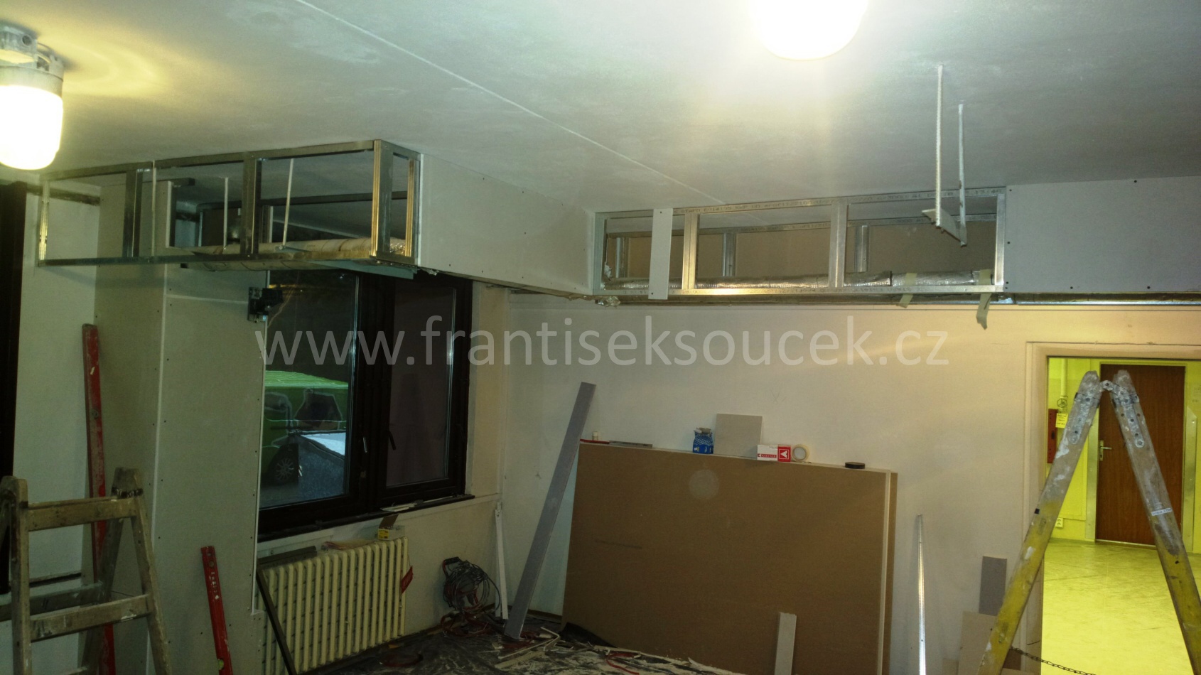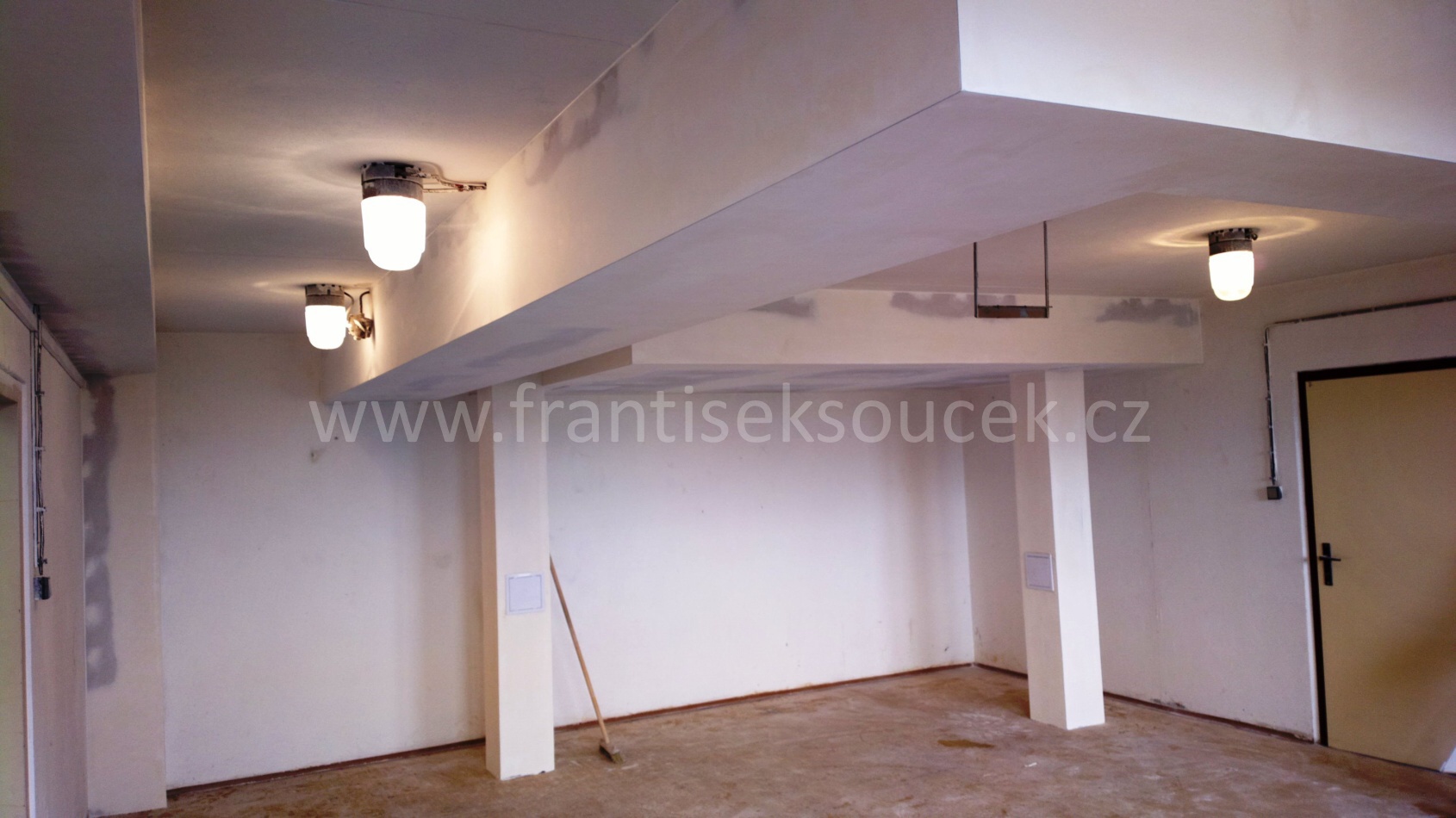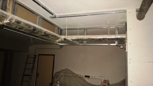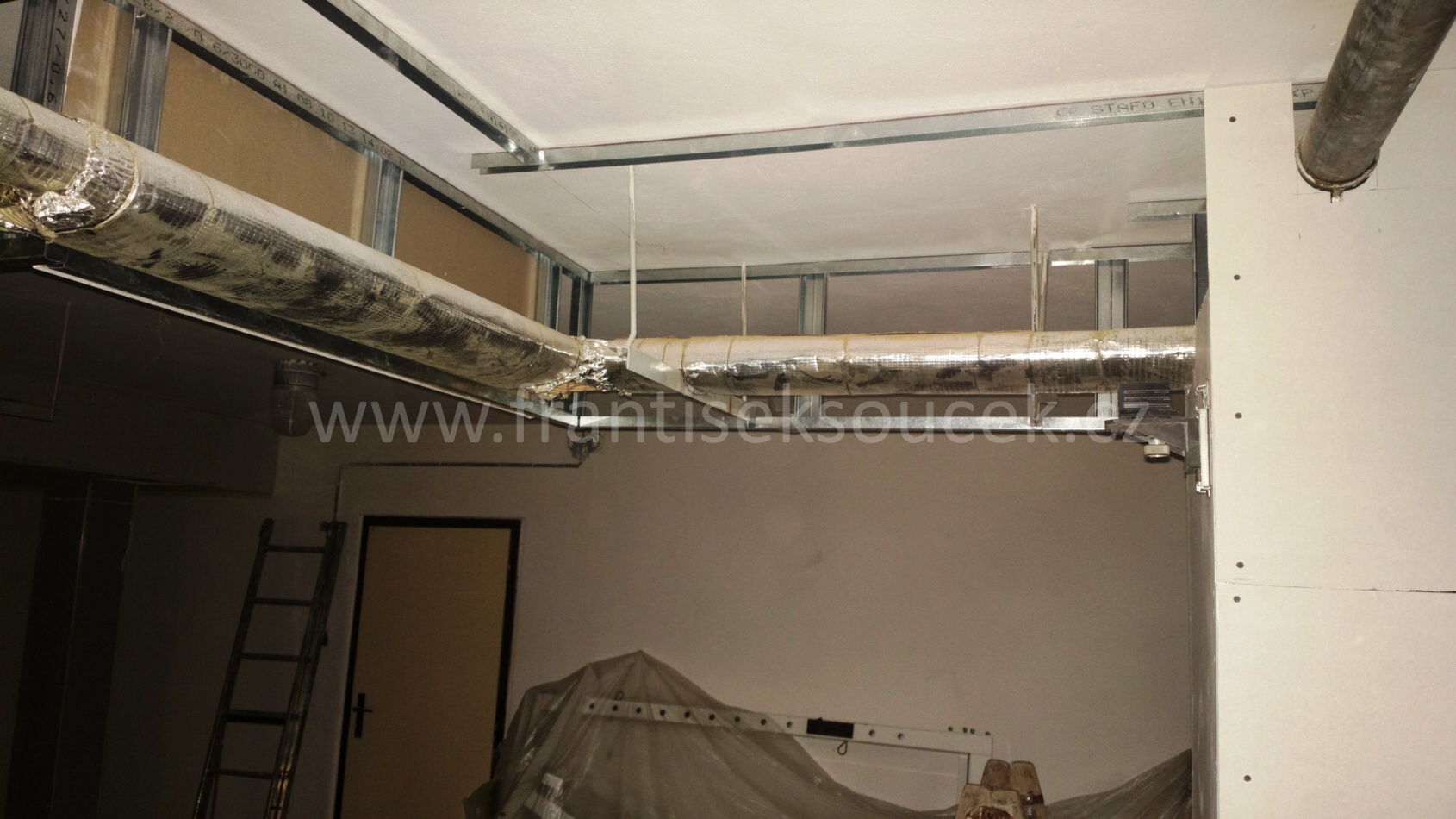 Sádrokartonové konstrukce, Praha 5 - Řepy, tělocvična PP ČR, zakrytí rozvodů UT sádrokartonovými kastlíky a opláštěny sádrokartonovou deskou RB 12,5 mm, stropní konstrukce D 112 na CD a ud profilech opláštěno deskou ze sádrokartonu, opláštění sloupu odolnější deskou sdk Knauf Diamant 12,5 mm (nabízí ještě vyšší pevnostní vlastnosti), montáž revizních otvorů. Kvalita provedení Q3, doba realizace 4 dny cca 42 m2. |