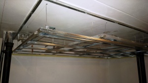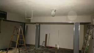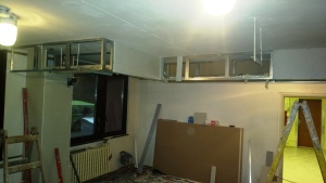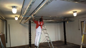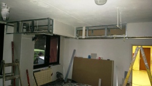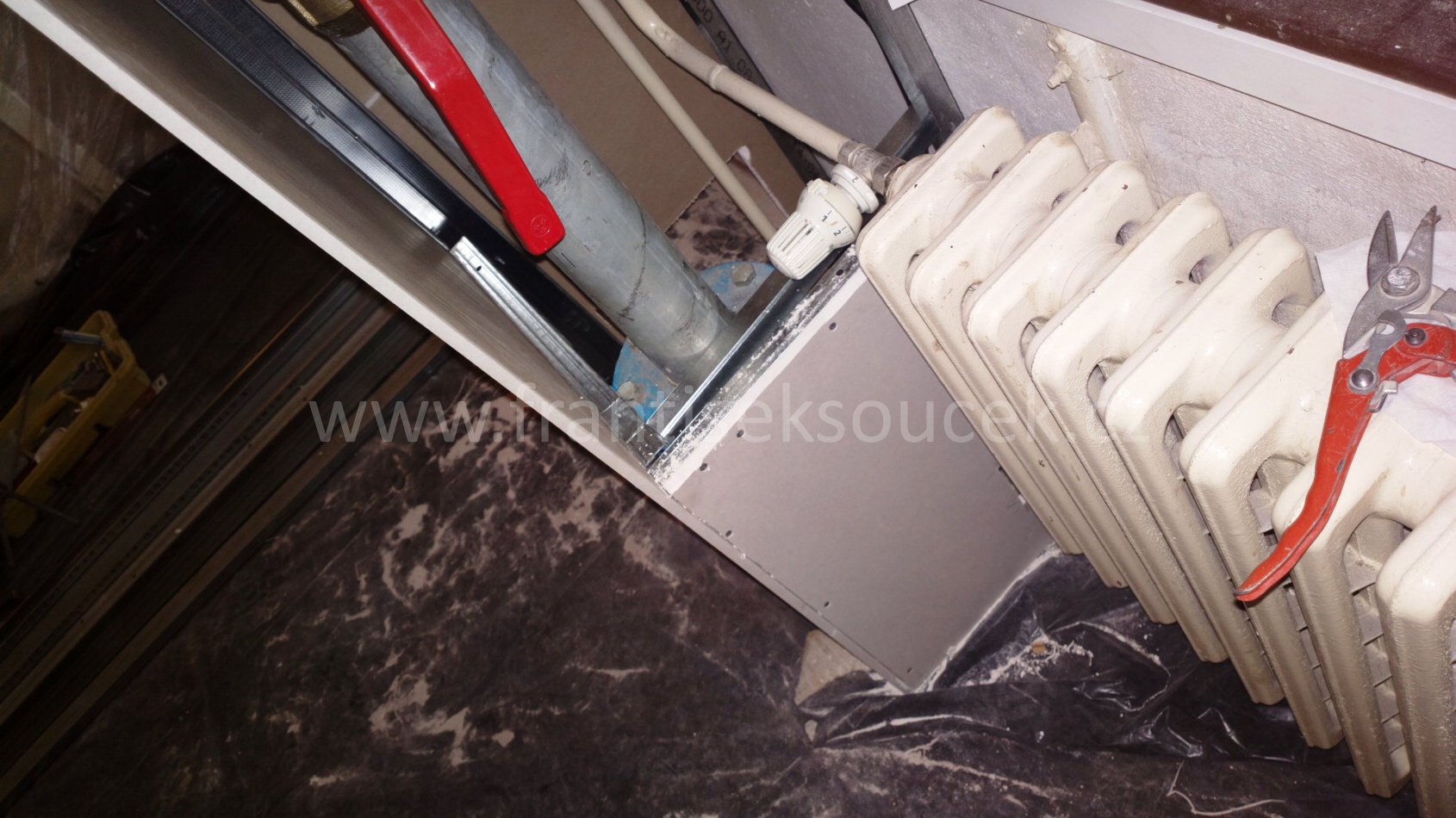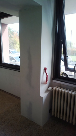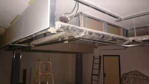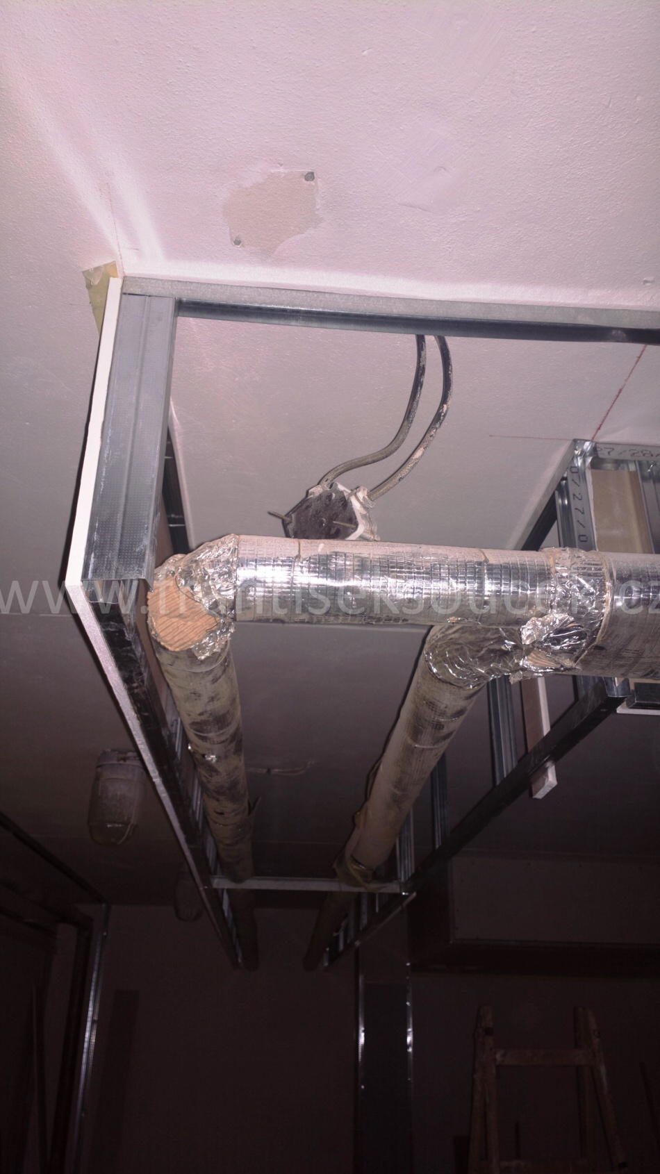 Sádrokartonové konstrukce, Praha 5 - Řepy, tělocvična PP ČR, zakrytí rozvodů UT sádrokartonovými kastlíky a opláštěny sádrokartonovou deskou RB 12,5 mm, stropní konstrukce D 112 na CD a ud profilech opláštěno deskou ze sádrokartonu, opláštění sloupu odolnější deskou sdk Knauf Diamant 12,5 mm (nabízí ještě vyšší pevnostní vlastnosti), montáž revizních otvorů. Kvalita provedení Q3, doba realizace 4 dny cca 42 m2. |