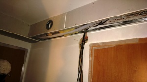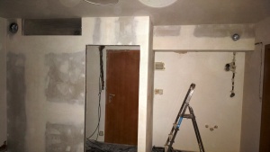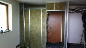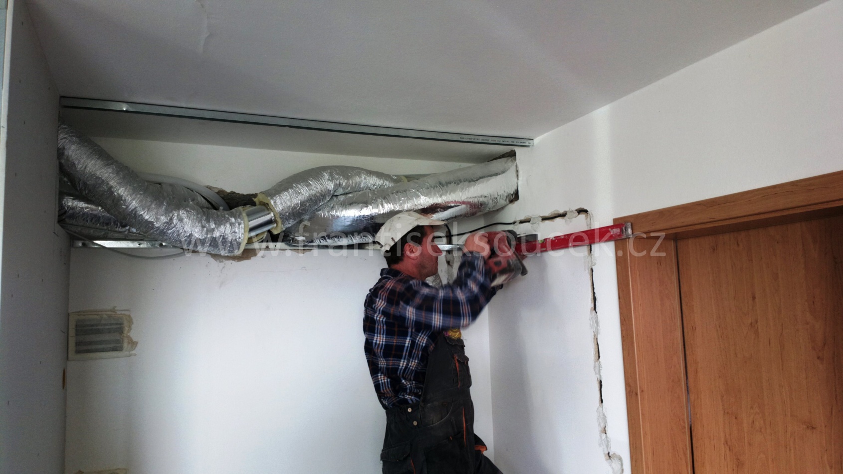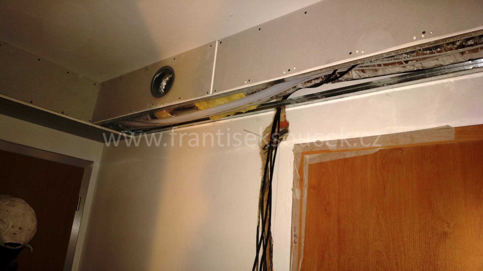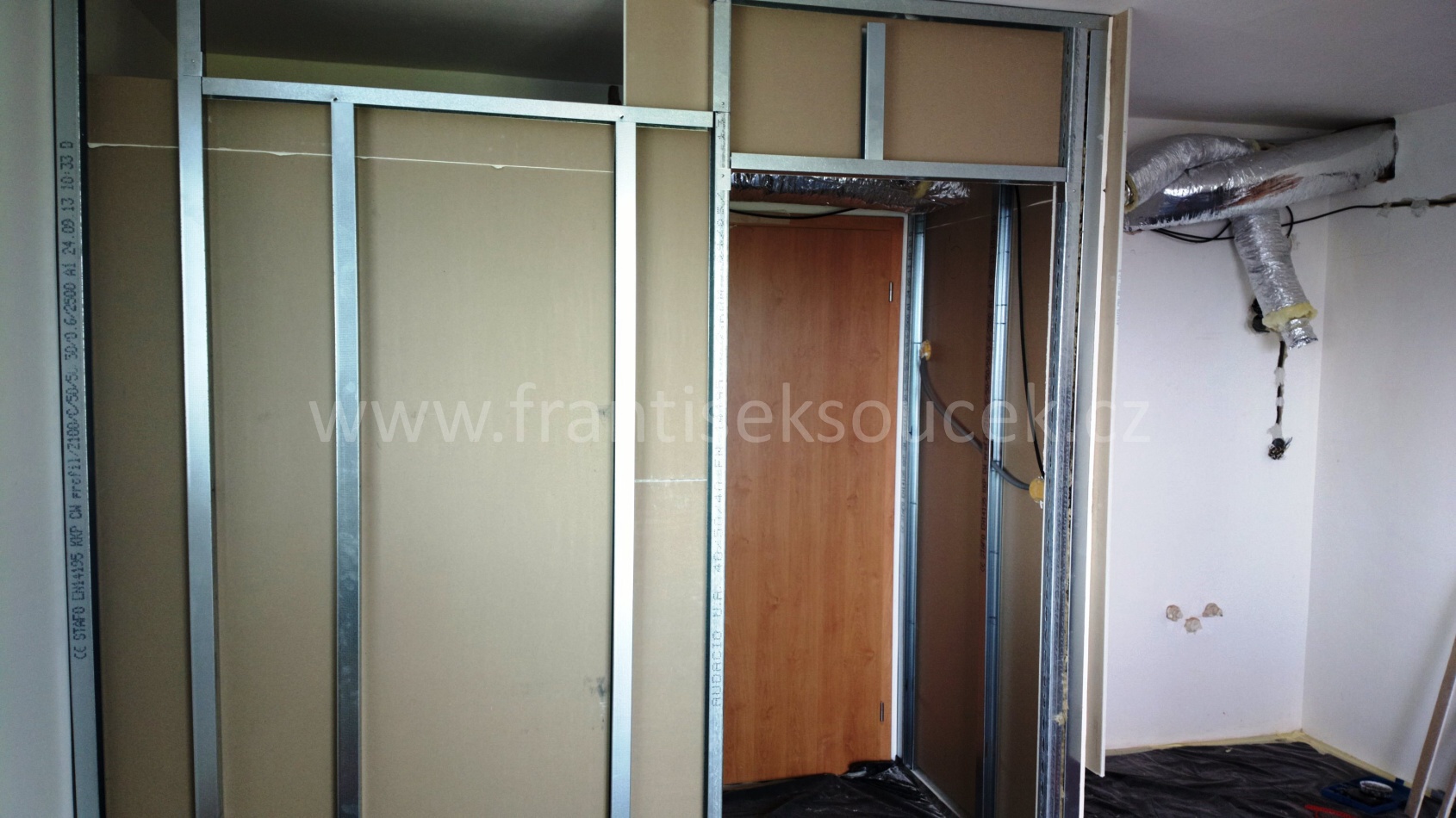 Konstrukce ze sádrokartonu, Praha 5 - Slivenec, zakrytí rozvodů VZT sádrokartonovými kastlíky a opláštěny sádrokartonovou deskou RB 12,5 mm, stropní konstrukce na CD a ud profilech, montáž výustek. Dělící příčka W112, ze sádrokartonových profilů UW 50 a CW 50, příprava dveřního otvoru pro montáž obložkových dveří z profilů UA, vložení izolace MPE 40mm do kovového rastru pro zlepšení zvukových vlastností, vytvoření prosvícení z plexiskla, kvalita provedení Q3, doba realizace 2 dny. |