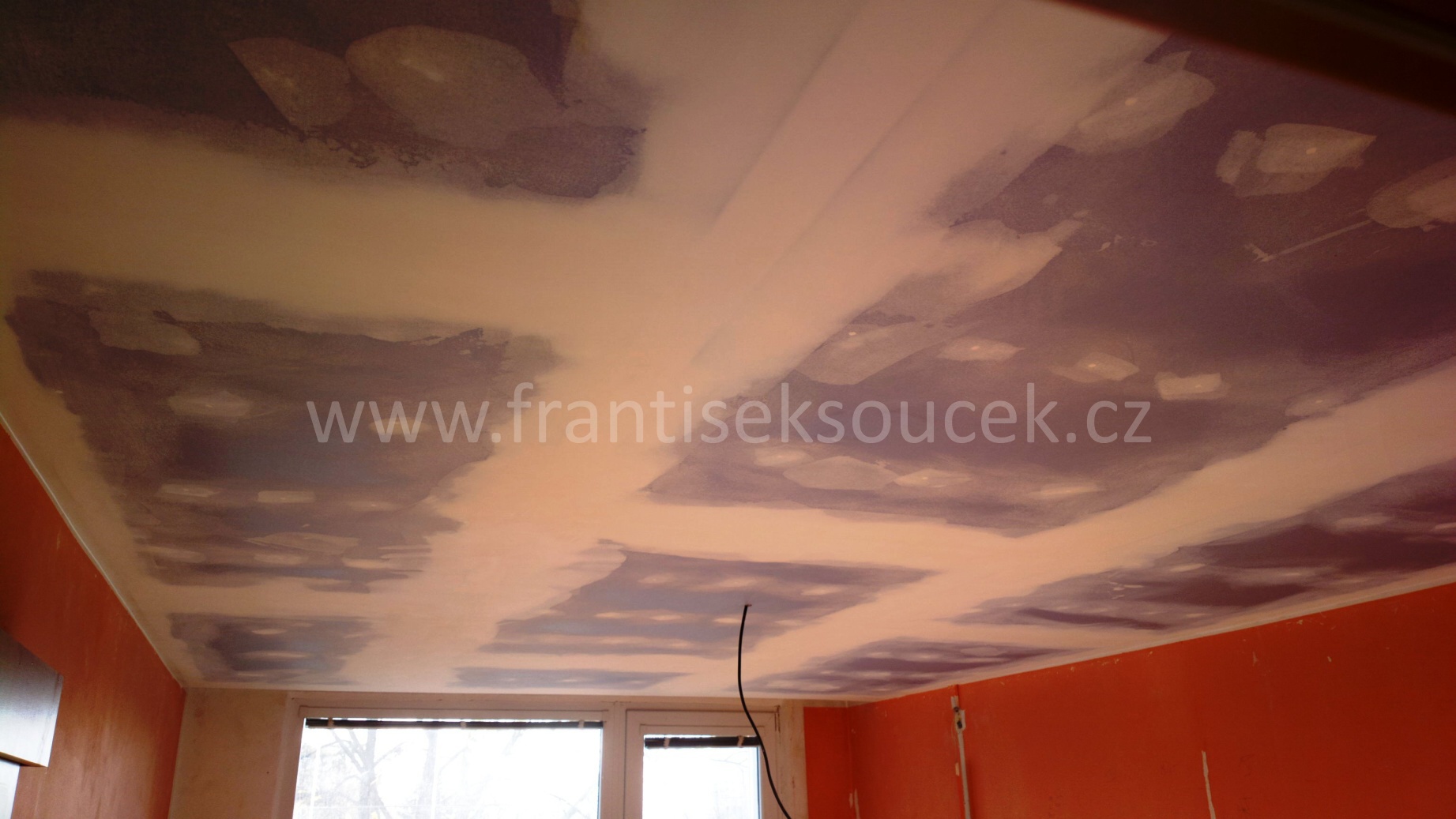 Montáž modré ticho Rigips, Praha 8 - Střížkov, protihluková ochrana staveb modrý akustický systém Rigips, dodání a montáž sádrokartonového akustického podhledu opláštěného sádrokartonovou modrou deskou Rigips MA 12,5 mm v panelovém domě zvuková neprůzvučnost Rw 60 db, 18 m2, 1 1/2 dne montáž, sádrová stěrka na stěnách Knauf Geltband. |