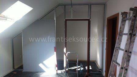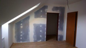 Dodávka a montáž modré akustické příčky Rigips, Loděnice u Berouna, odhlučnění pracovny v bytě ochrana staveb modrý akustický systém Rigips, dodání a montáž sádrokartonové akustické stěny volně stojící, opláštěného 2x sádrokartonovou modrou deskou Rigips MA 12,5 mm v řadovém domě, zvuková neprůzvučnost Rw 56 db , požární odolnost EI 90 minut , 8,5 m2 , minerální izolace dle specifikace výrobce tl 60 mm, vložení kovové zárubně uchycené do UA profilu, 1 den montáže včetně zakryti podlahy a olepení okolí. |