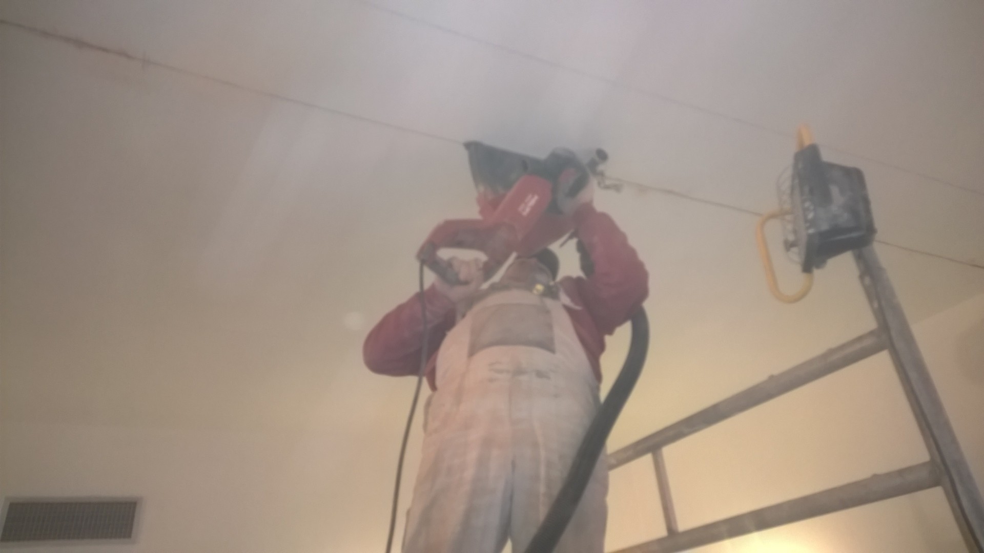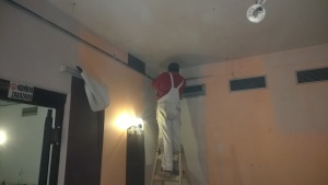 odstranění poškozeného stropu, zakrytí a úklid prostoru, drobné elektopráce, oprava stěn, výmalba.