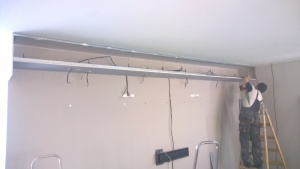 Sádrokartonové práce Praha 5 - Malvazinky, designový sádrokartonový podhled, opláštění a nika pro promítací plátno,zadělání šliců po rozvodech, oprava omítky, přívod elektriky, rozvod ozvučení, schování rozvodů, lištování, montáž LED bodového osvětlení Kanlux, výmalba, přesun nábytku, zakrytí okolí, montáž plátna atd ... |