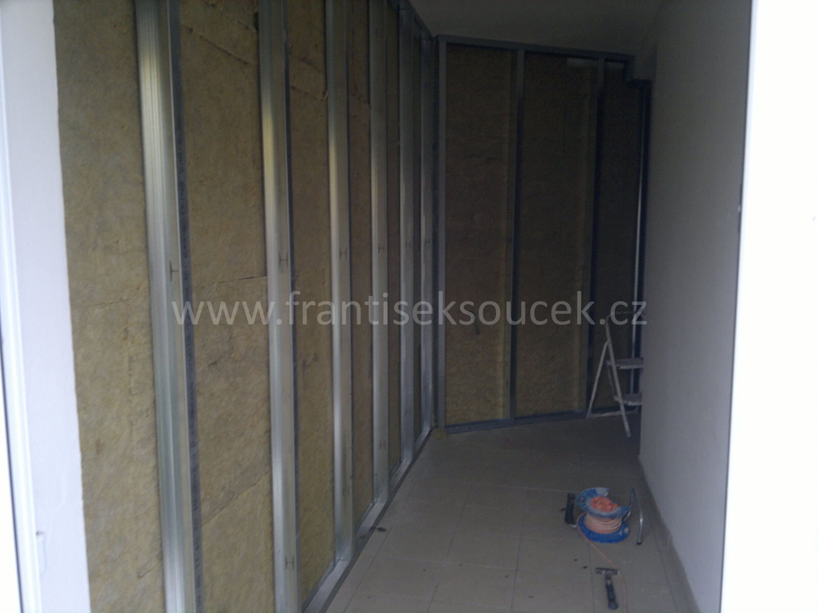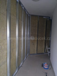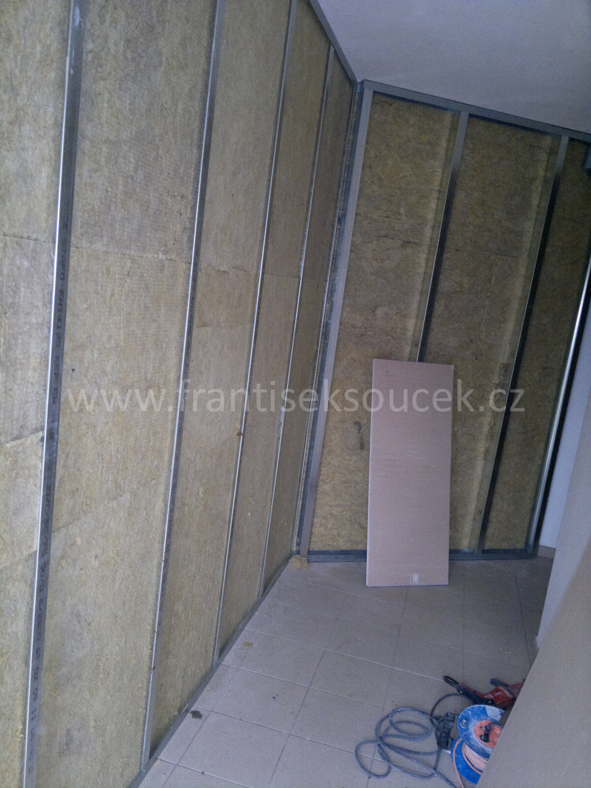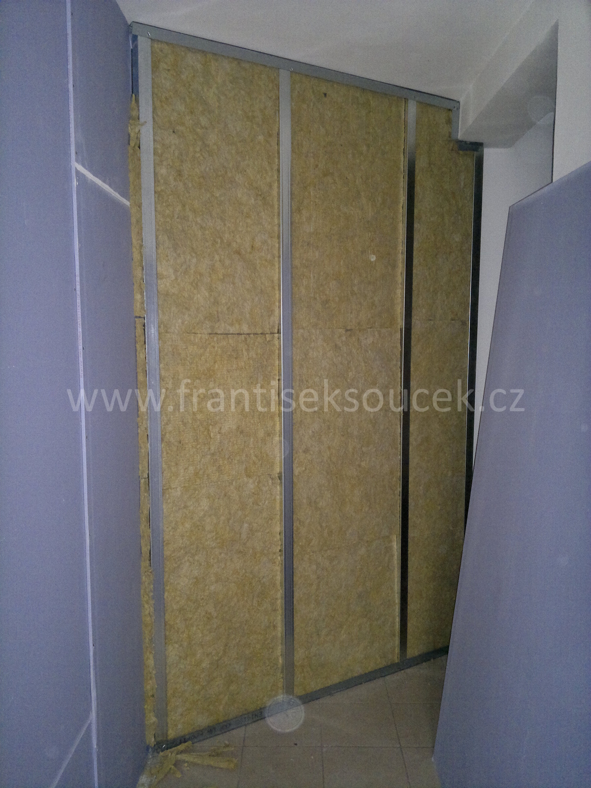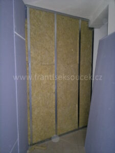Praha 8 – akustická sádrokartonová předsazená stěna Rigips s přidanou tepelnou izolací.