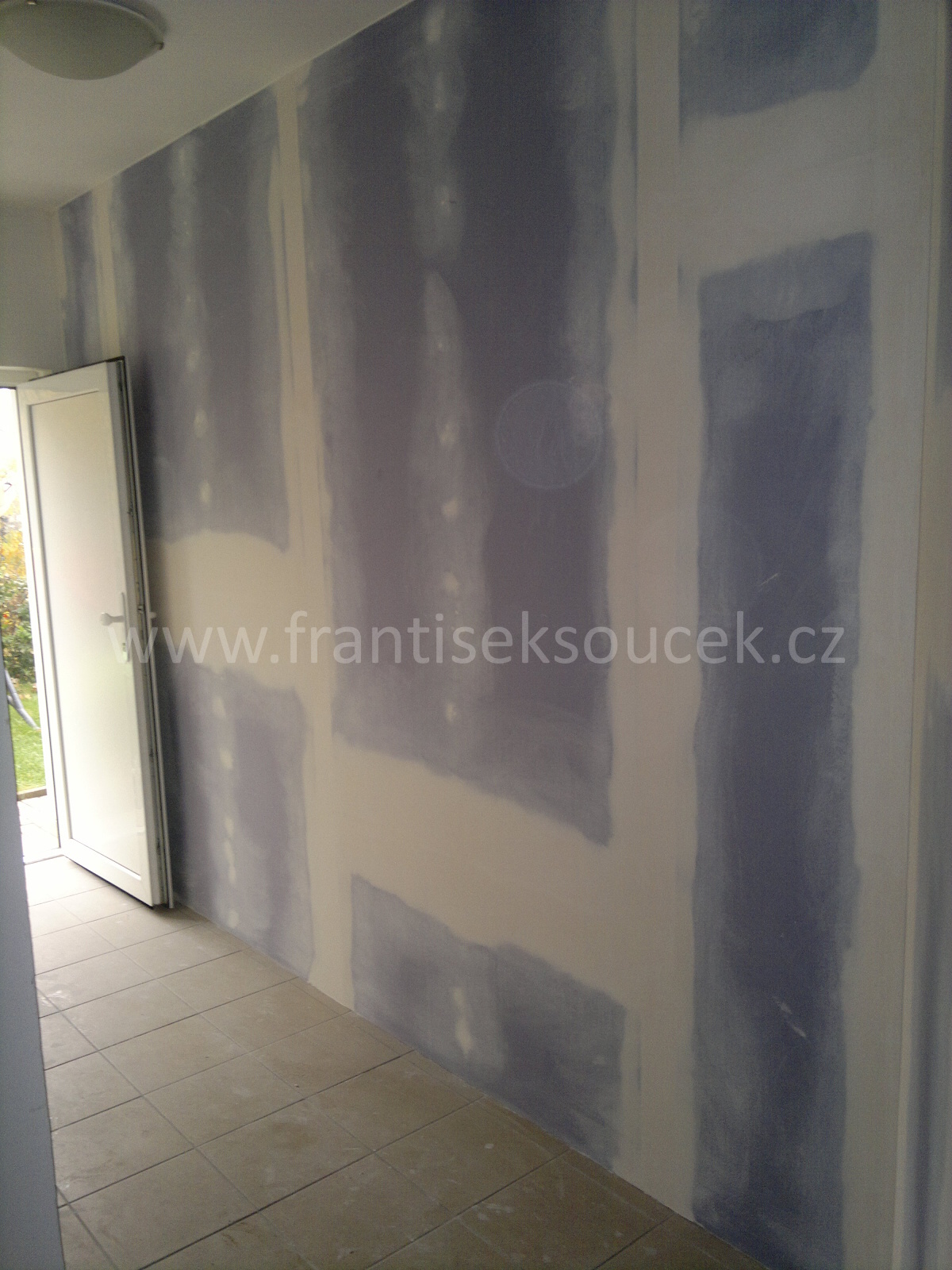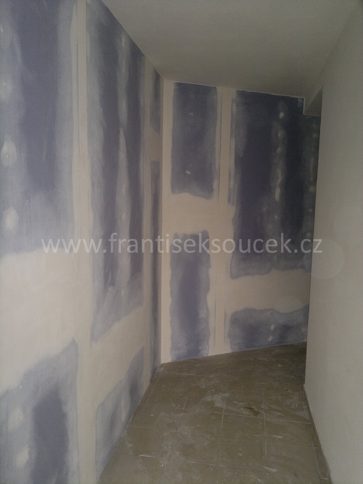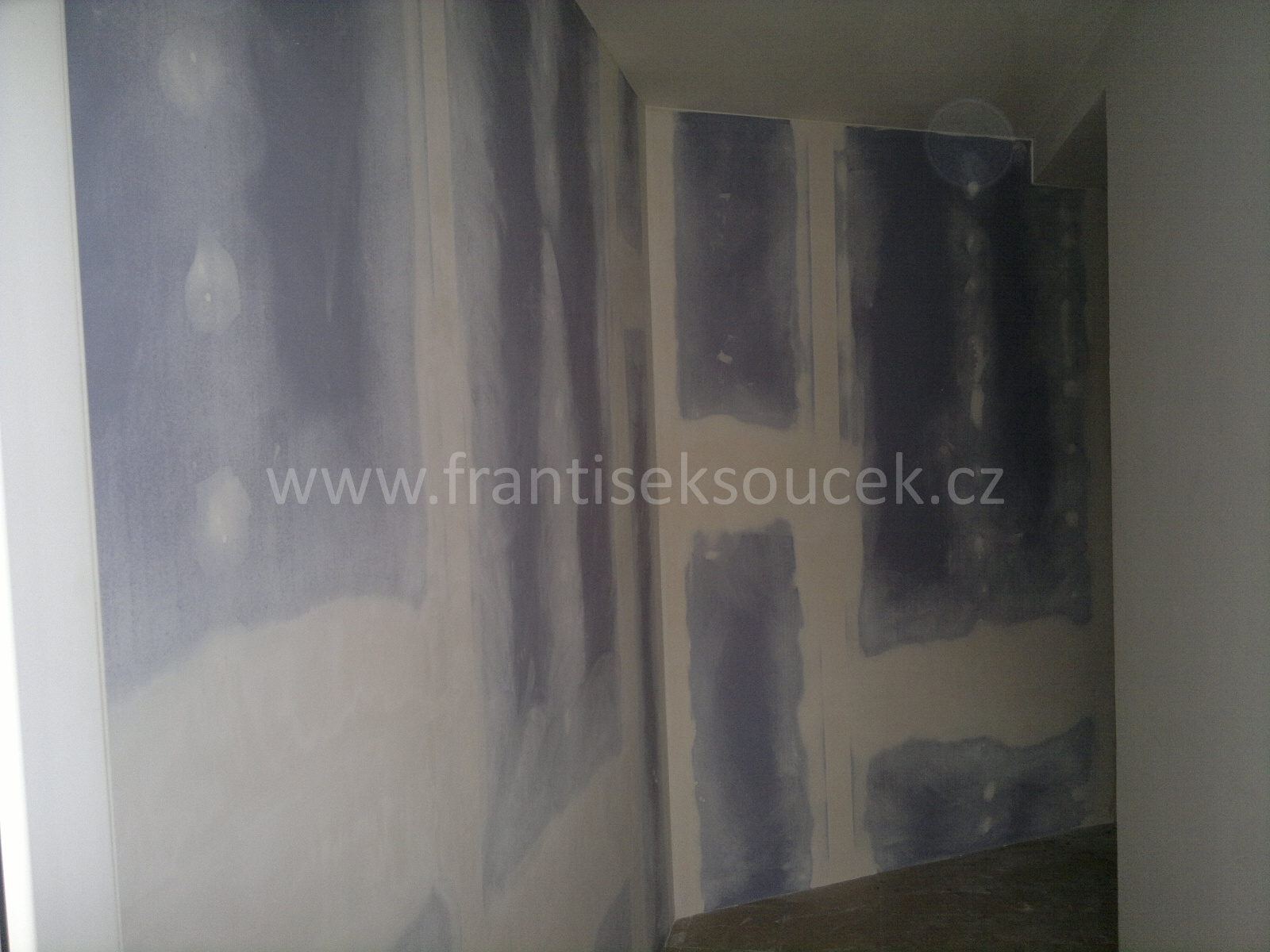 Praha 8 – akustická sádrokartonová předsazená stěna Rigips s přidanou tepelnou izolací.