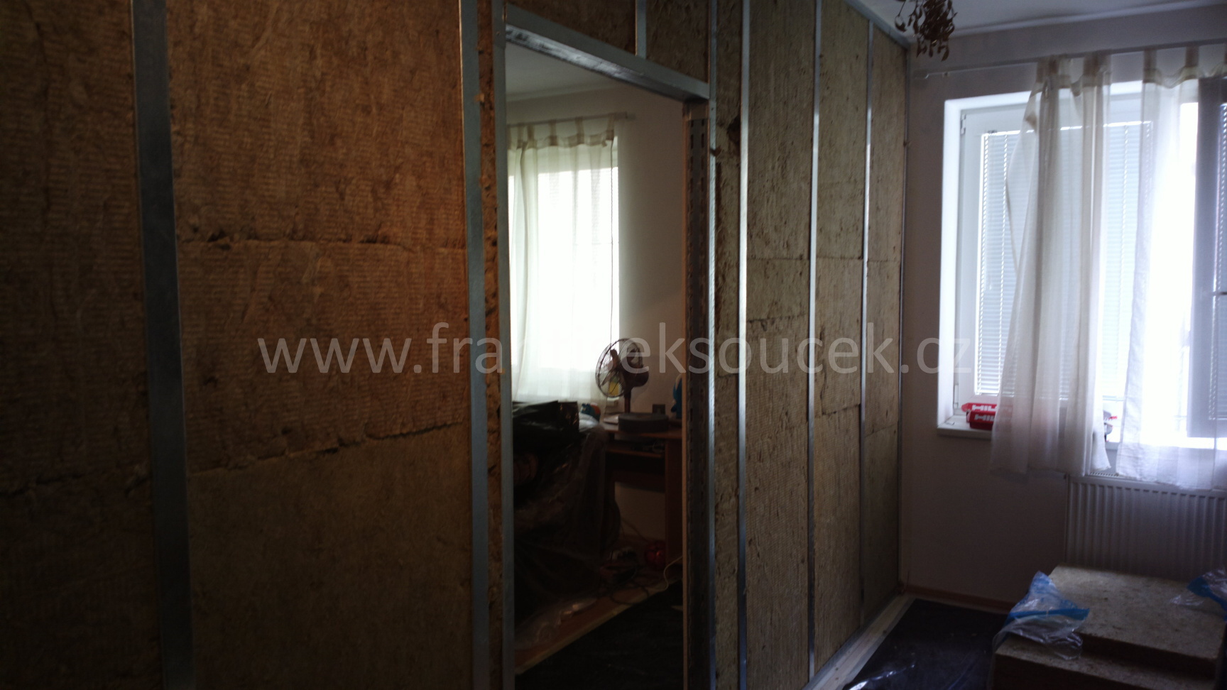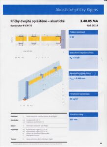 Montáž sádrokartonových konstrukcí Praha 10 – Horní Měcholupy, Akustická příčka Rigips, modrá sádrokartonová deska 3.40.05 MA OK 14, Příčka dvojitě opláštěná – akustická (modré ticho), akustická izolace MPE 40 mm.
